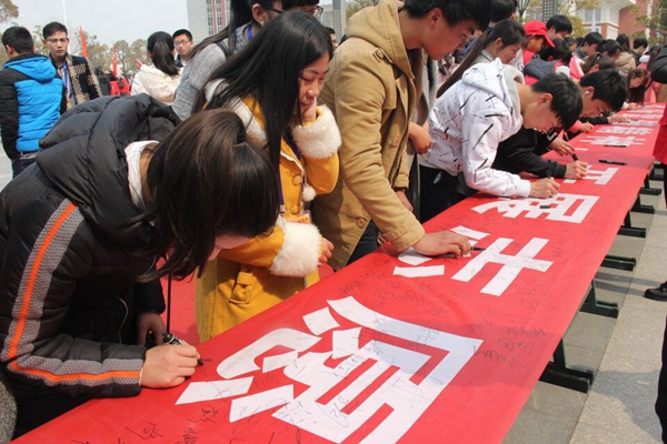 3月2日中午,我院学雷锋志愿者服务月启动仪式在食堂北门隆重举行,我系青年志愿者分会组织100名志愿者参加启动仪式。活动现场,志愿者们纷纷在“弘扬雷锋精神 提供志愿服务”的横幅上签名承诺。