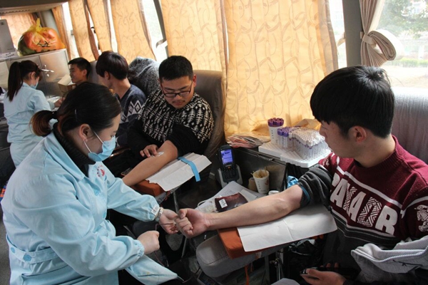 启动仪式后,我系20多名志愿者自愿加入义务献血的队伍,奉献出自己的一腔“热血”;此外,我系学干还协助现场工作人员维持秩序、发放纪念品。