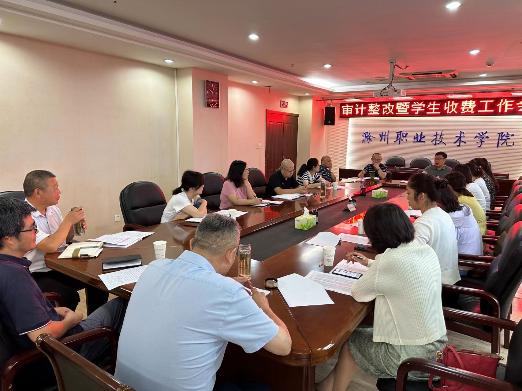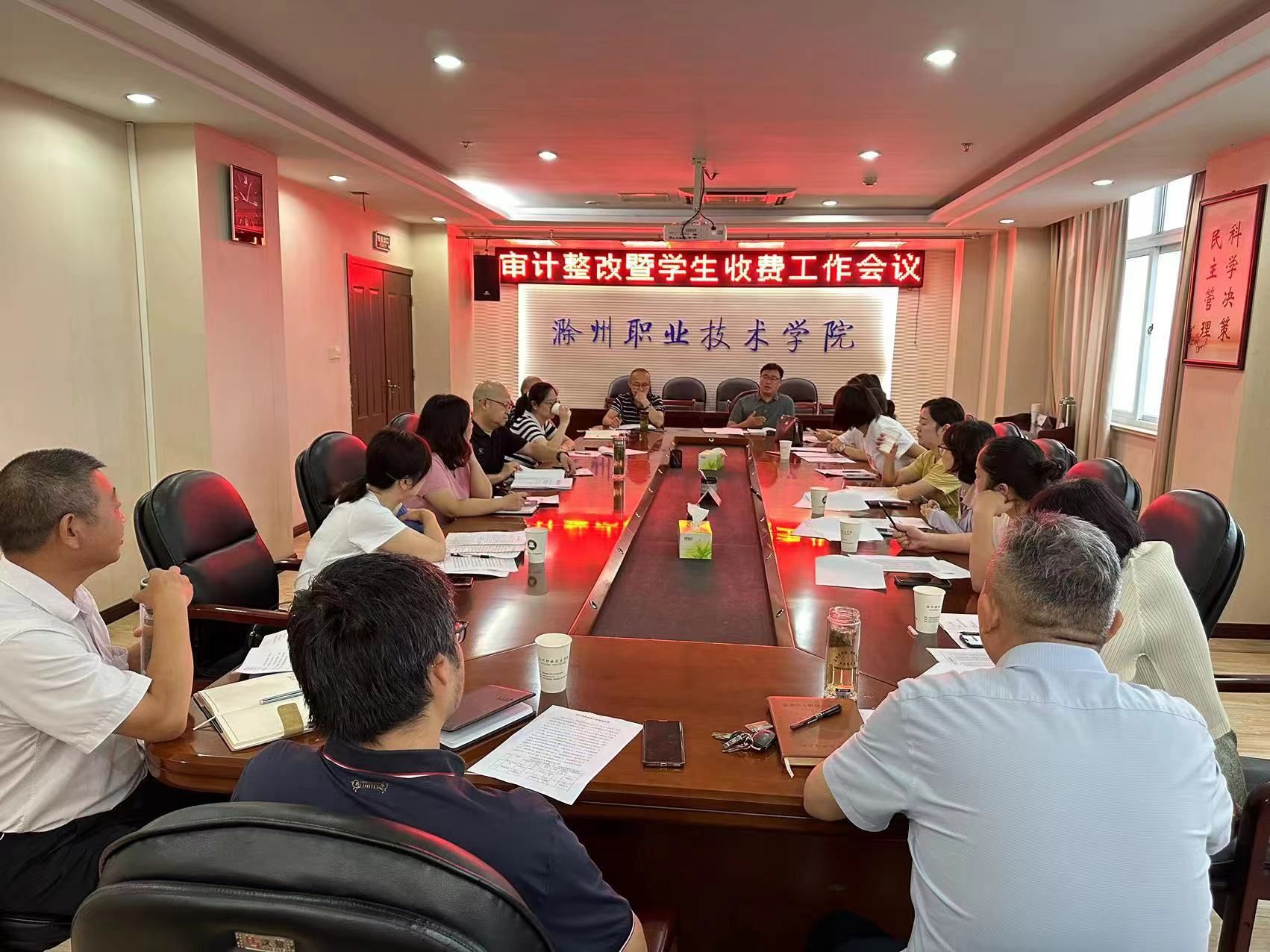 7月17日,胡校长主持审计整改暨学生收费工作会议。会议对下一步学生学费等各项费用的收取工作以及欠费的催缴做了部署。