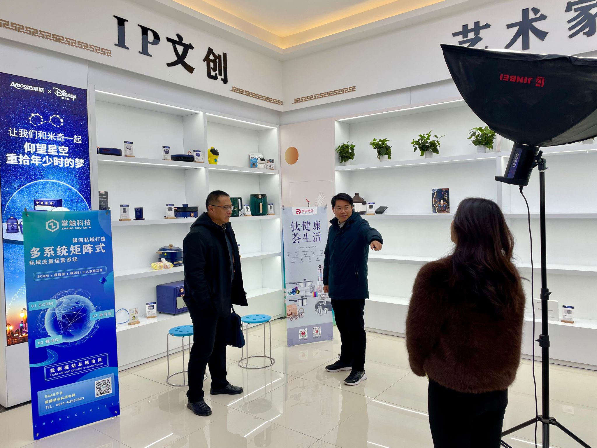 安徽晓庄信息技术有限公司负责人带领李超一行参观了晓庄产业园和电商直播创新中心,并重点介绍往年校企合作项目及产业服务内容。