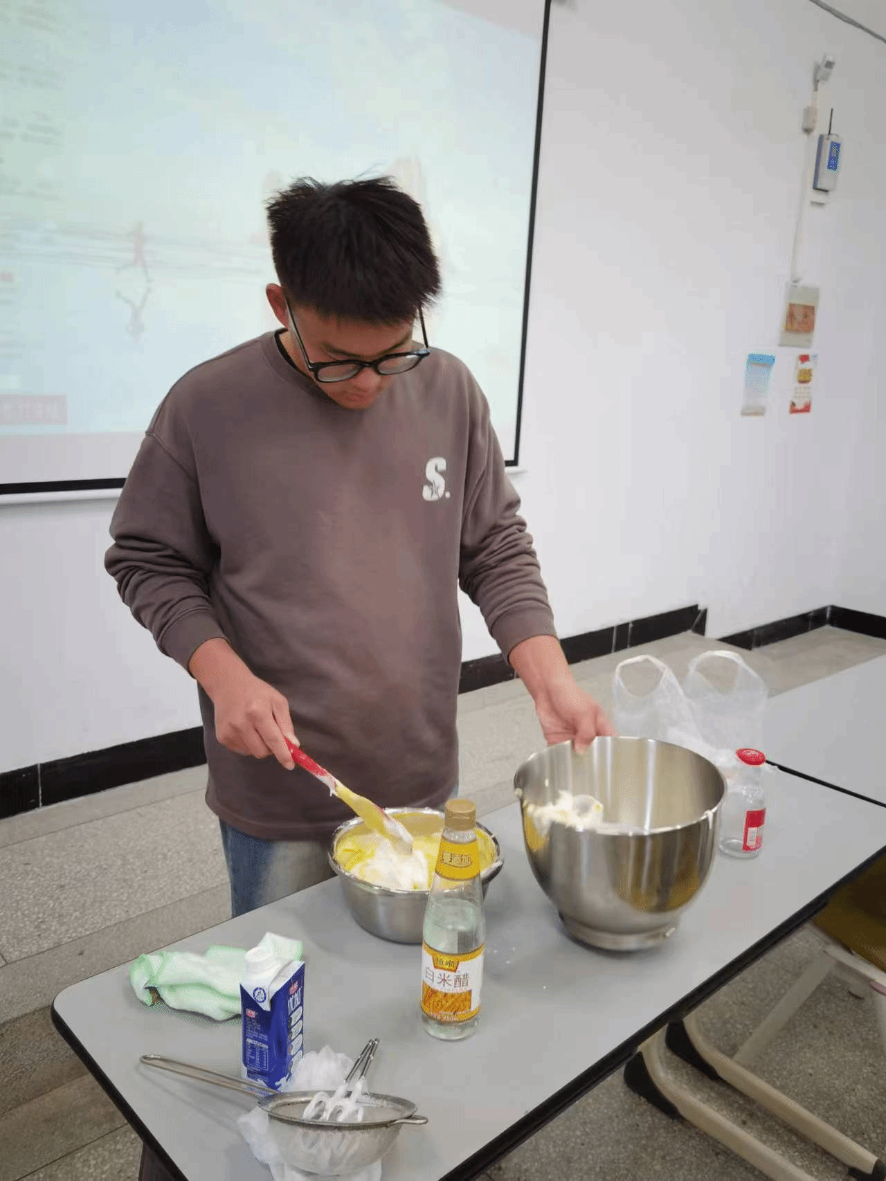 在整个过程中,主要采用任课老师讲解制作要领、学生动手实践的方式,最终耗时1.5小时,香喷喷的纸杯蛋糕出炉,学生们得以品尝自己的劳动成果。