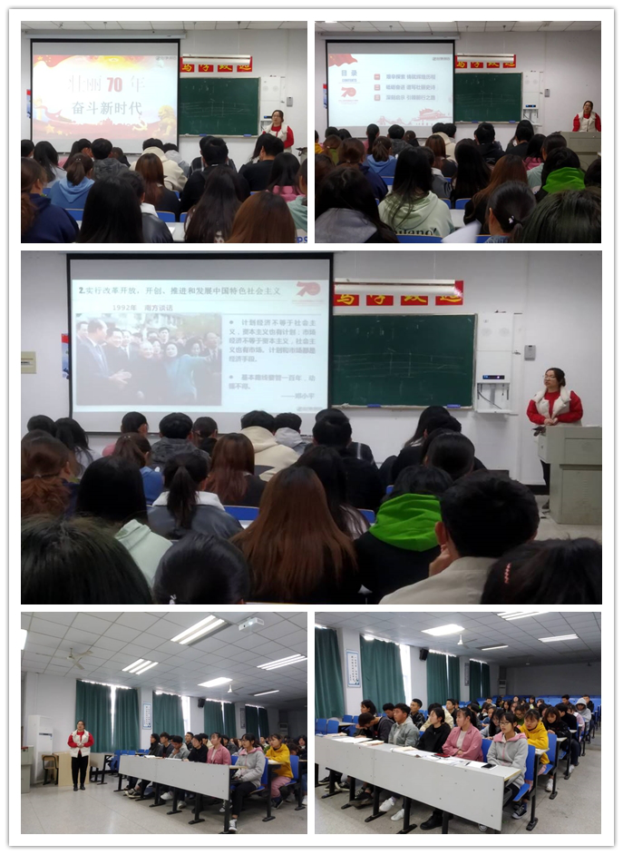 为了让新生团员对新中国成立七十年来的奋斗历程有更清晰的认识, 提高团员们的思想理论水平和政治素质。商学院和管理学院于11月19日在1116教室开展了“壮丽70年,奋斗新时代”主题团课。本次团课由商学院团总支副书记赵莹老师主讲。