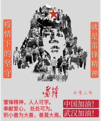 此次活动虽然是线上活动,但同学们参加活动的热情丝毫未减。活动一开始,生活部成员在班长群里做宣传,鼓励班级同学共同完成一副作品,既体现了班级同学团结协作的精神,又增强了同学们对自己“心目中的雷锋”的了解,用图文的形式来歌颂雷锋精神的伟大更加全面引导大学生做中华民族传统美德的传承者、社会主义道德规范的实践者、良好社会风尚的创造者。