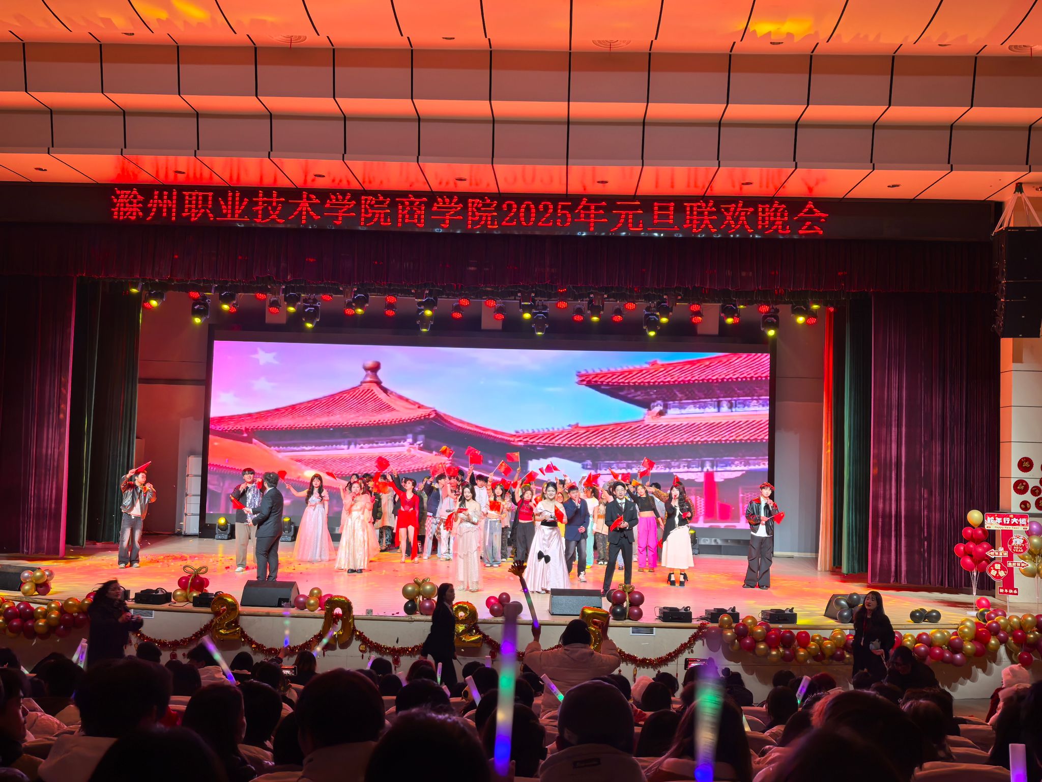 2024 年 12 月 24日晚,商学院“商韵青春 乐迎新岁”2025年元旦晚会在大礼堂隆重举行。校党委委员、商学院党总支书记李超、商学院党总支副书记李晓辕以及全体师生齐聚一堂,共同庆祝这美好时刻。