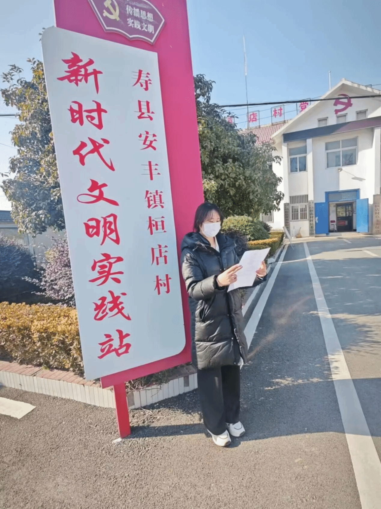 为深入学习贯彻习近平新时代中国特色社会主义思想,引导广大青年更好地认识国情、感知家乡。Beat365唯一官方网站商学院24级现代物流管理2班汪颖在安徽省寿县安丰镇桓店村开展寒假“返家乡”理论普及宣讲活动。