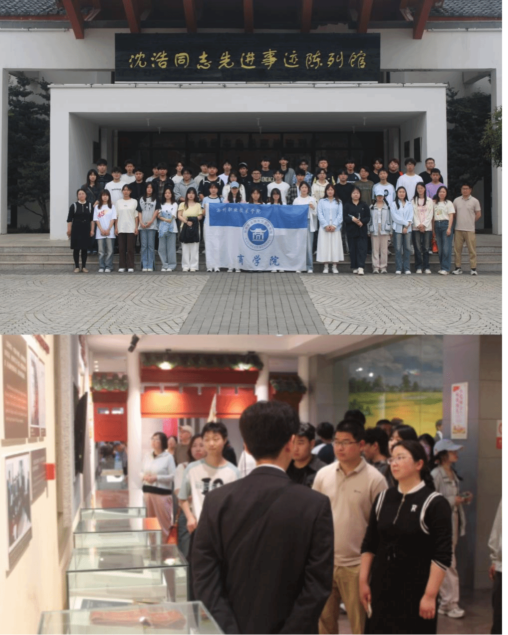 上午行程结束后,师生们怀着崇敬的心情来到小岗村沈浩同志先进事迹陈列馆。在解说员的讲述中,大家了解到沈浩同志放弃城市优越生活,扎根小岗村,带领村民修路、建厂、搞改革,为小岗村的发展鞠躬尽瘁,直至献出宝贵生命。他一心为民的公仆情怀和勇于担当的奉献精神,深深打动了在场的每一个人。