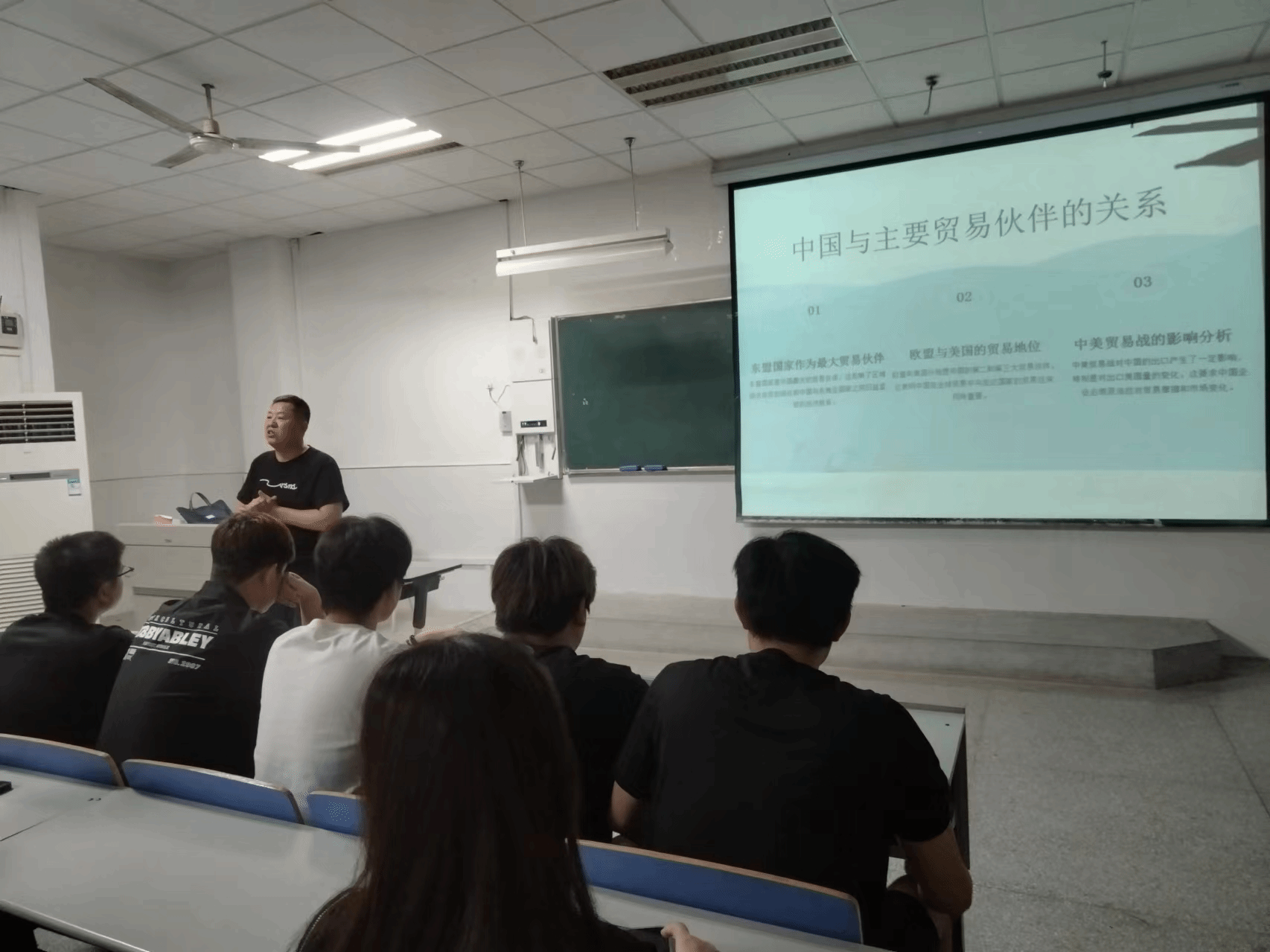5月14日晚19:00-20:30分,商务英语专业产业教授邓宏在1119为商务英语专业全体学生及外语协会的同学们举办了题为——国际贸易市场开拓。讲座共分为三个部分:中国国际贸易现状概览、 中国与主要贸易伙伴的关系及进出口贸易流程概述。产业教授邓宏理论联系实践,从国际贸易市场开拓的渠道、中国国际贸易的现状到从事国际贸易相关工作的所应具备的职业能力和职业素养,给同学们进行了全面地剖析。讲座后半段,产业教授邓宏邀请他们公司的外贸经理为学生现场讲解如何参加线下展会,并分享了他们公司参加第137广交会的经验。