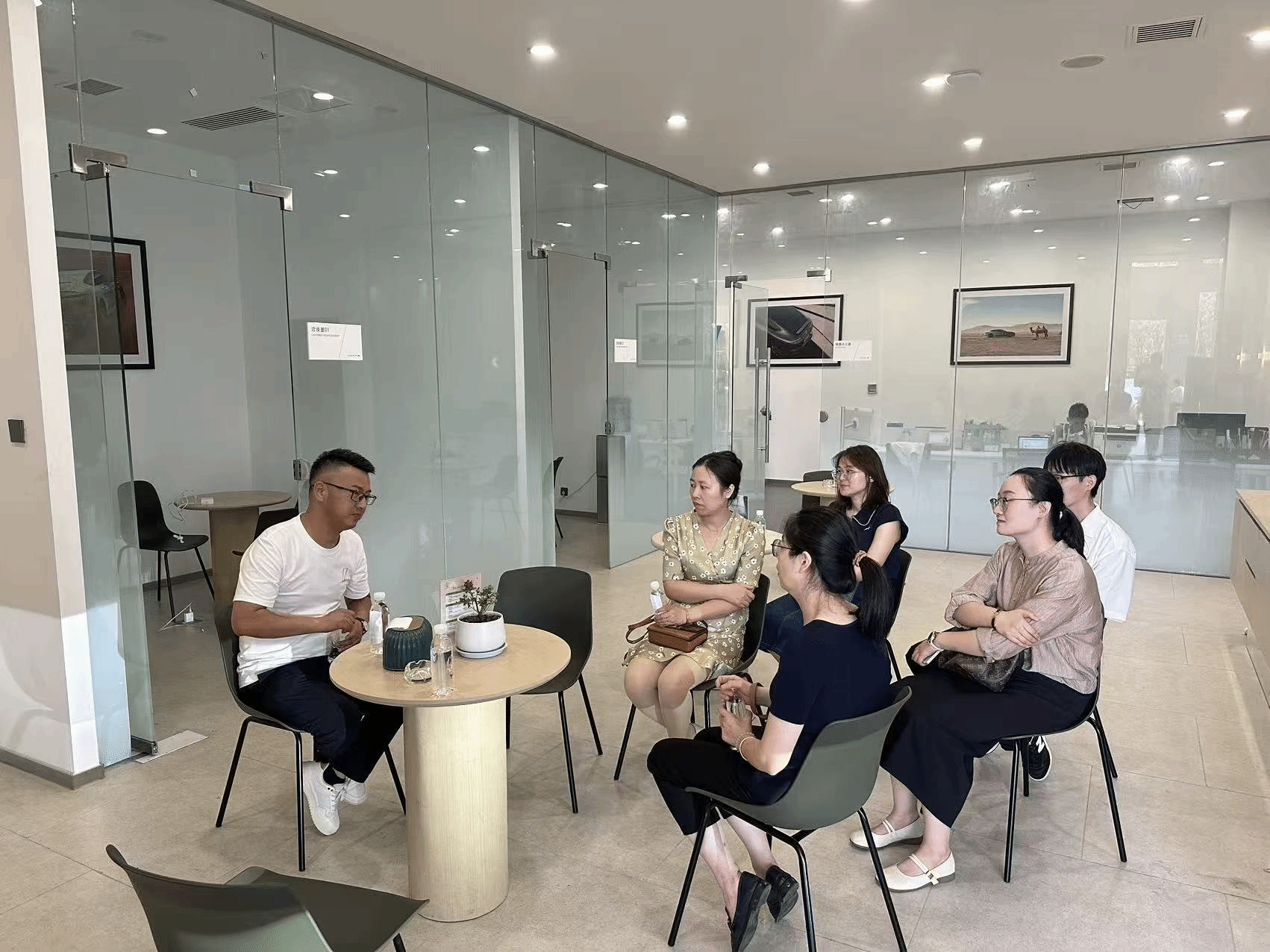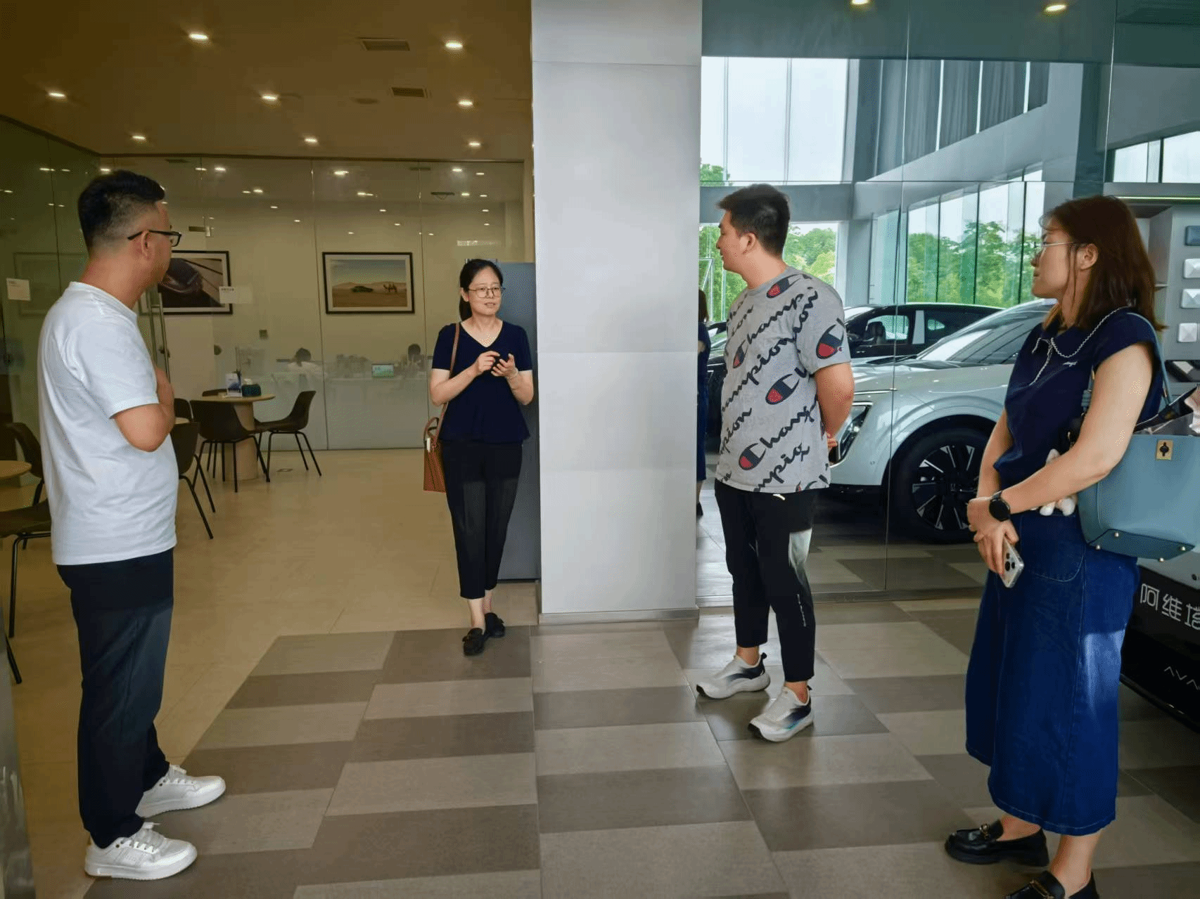 走访过程中,在滁州阿维塔4S店负责人的陪同下,参观了展厅、销售区域、售后服务中心以及客户休息区等,全面了解了4S店的运营模式、业务范围和企业文化。在与4S店管理团队的座谈会上,商学院李晓辕详细介绍了本院的专业设置、人才培养特色、学生实习就业等基本情况,重点阐述了学院在市场营销专业领域的实践经验,表达了希望与阿维塔4S店建立长期稳定校企合作关系的意愿。