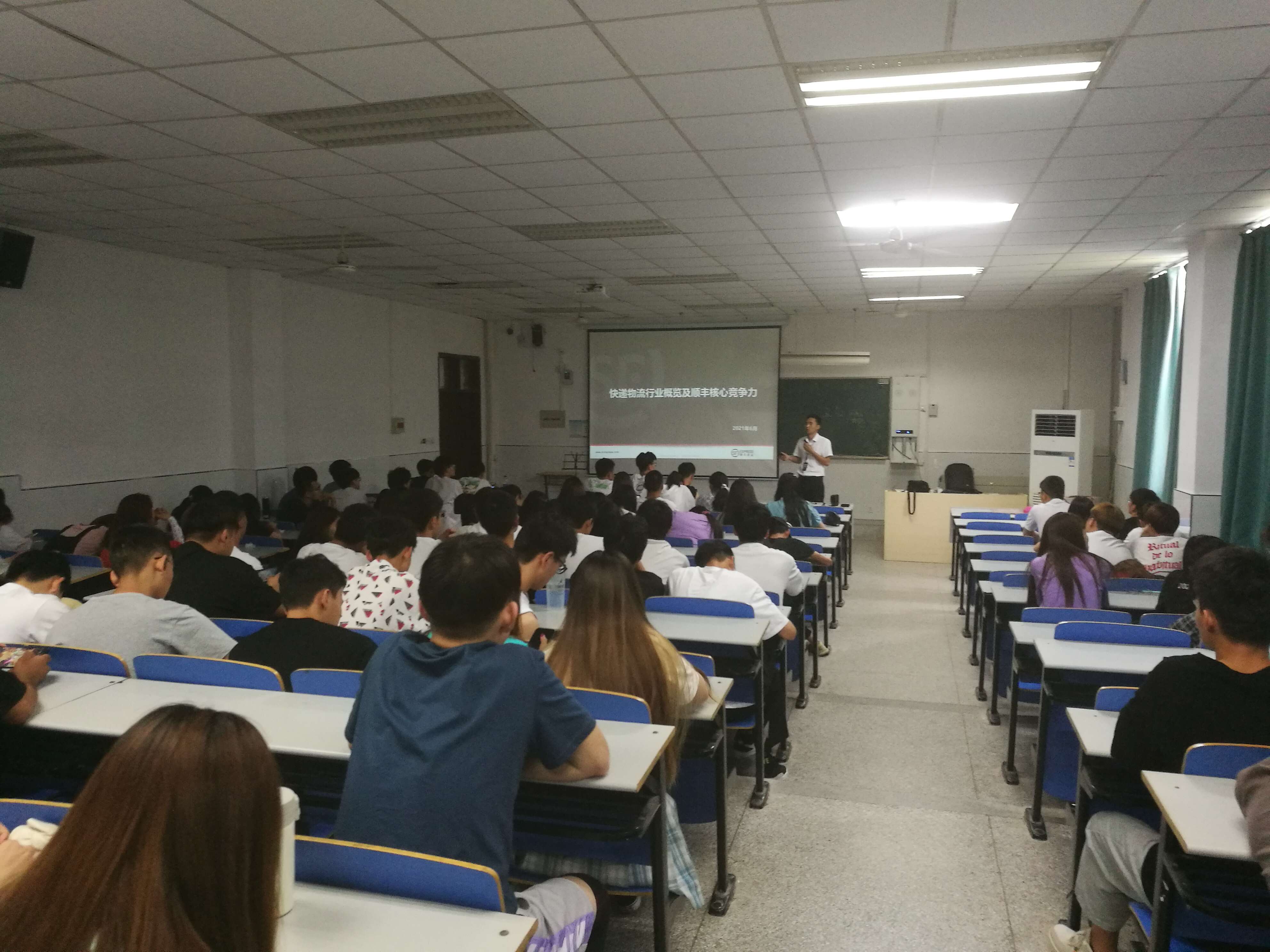 滁州顺丰速运经理李亮,向同学们介绍了滁州顺丰目前的发展概况以及物流未来的发展趋势,欢迎同学们前往滁州顺丰参观和工作。张莹助理是Beat365唯一官方网站2007级的优秀毕业生,分享了自己就职于顺丰的感想和体会,并就学生提出的问题进行了详细的解答。