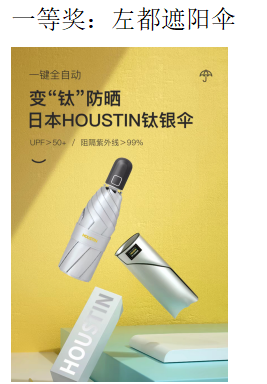 一等奖:每个项目各一名,奖励左都遮阳伞一个。
