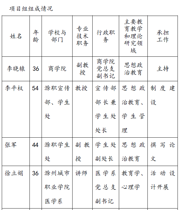 成员徐立娟为滁州城市职业学院辅导员,2017年当选安徽省创新创业类“向上向善好青年”,2017年获安徽省高校优秀辅导员荣誉称号,所带班级14级学前教育2班荣获2016年“全国高校活力团支部”荣誉称号。