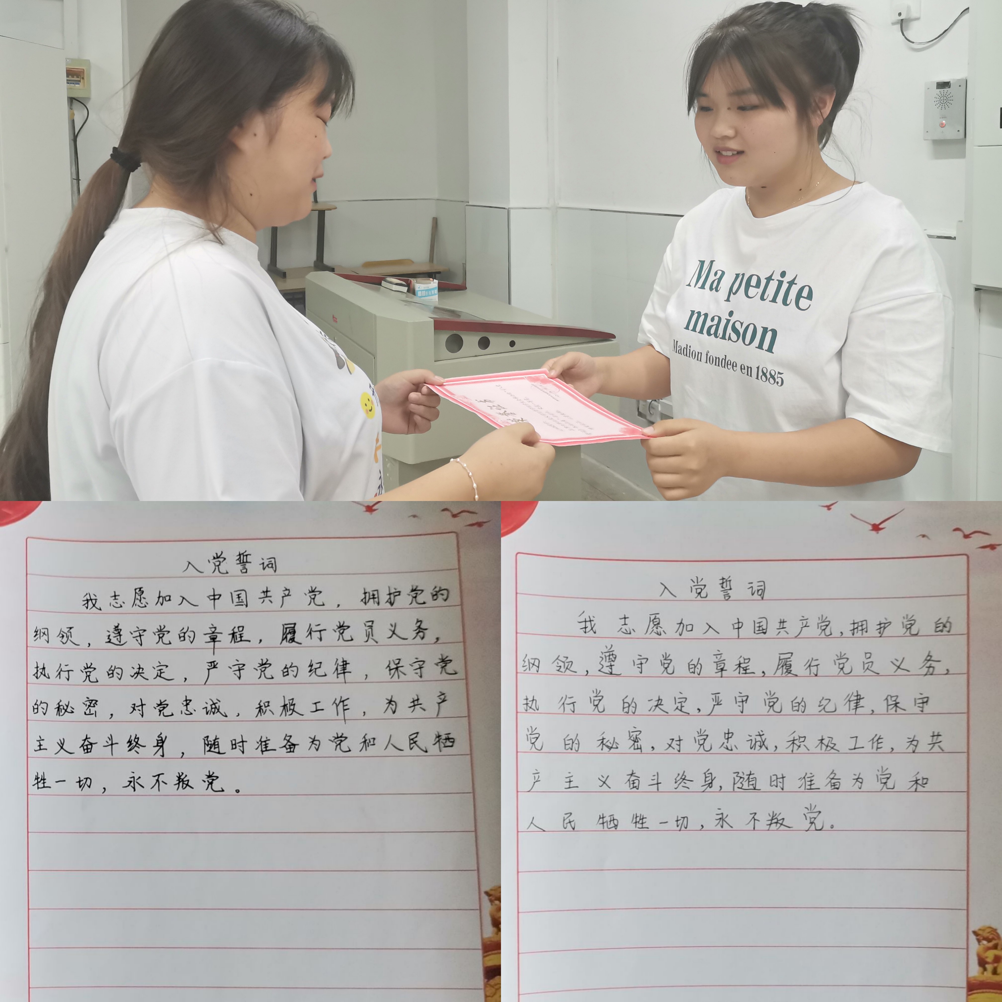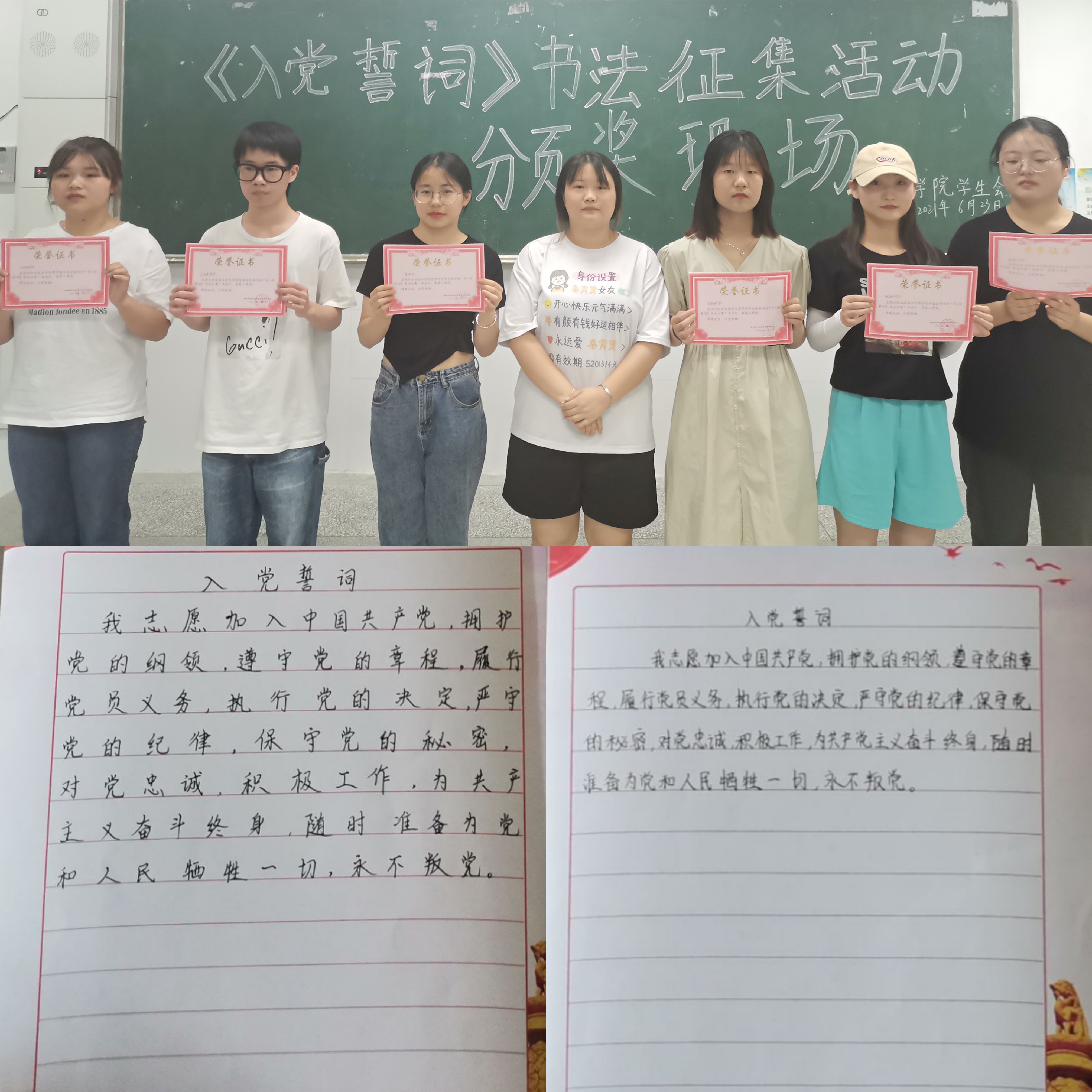 为了建设富有特色又积极向上的宿舍文化,发挥宿舍的育人作用,利用宿舍空间,结合党史学习教育,全面提高学生的文明素养和综合素质。商学院“和乐宿舍”于6月7日举办了《入党誓词》书法征集。