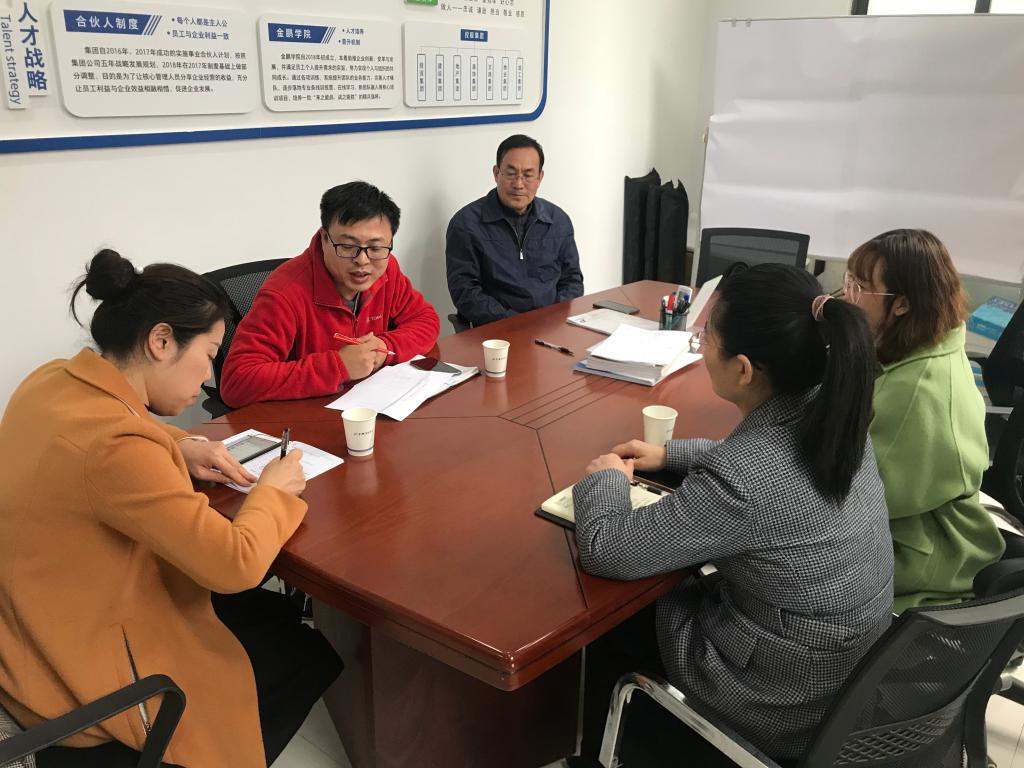 2019年11月12日,商学院书记兼院长李有志,副院长程震,营销外贸系曹洁老师一行三人,前往滁州金鹏控股集团交流“金鹏班”的教学计划和课程设置。