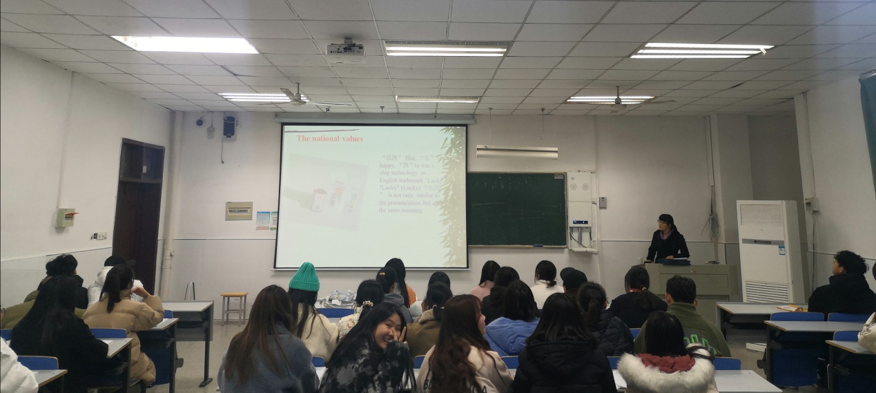 外语协会于12月30日16:00在1116教室举办了由齐巧云副教授主讲的《Different Culture Connotation in Famous Trademarks》学术讲座,外语协会会员及部分商务英语专业学生参加了此次讲座。