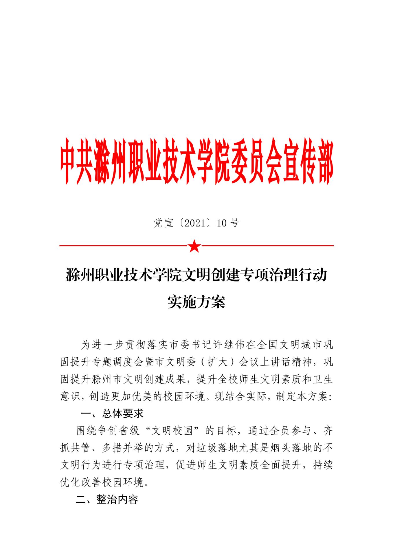 Beat365唯一官方网站文明创建专项治理行动实施方案