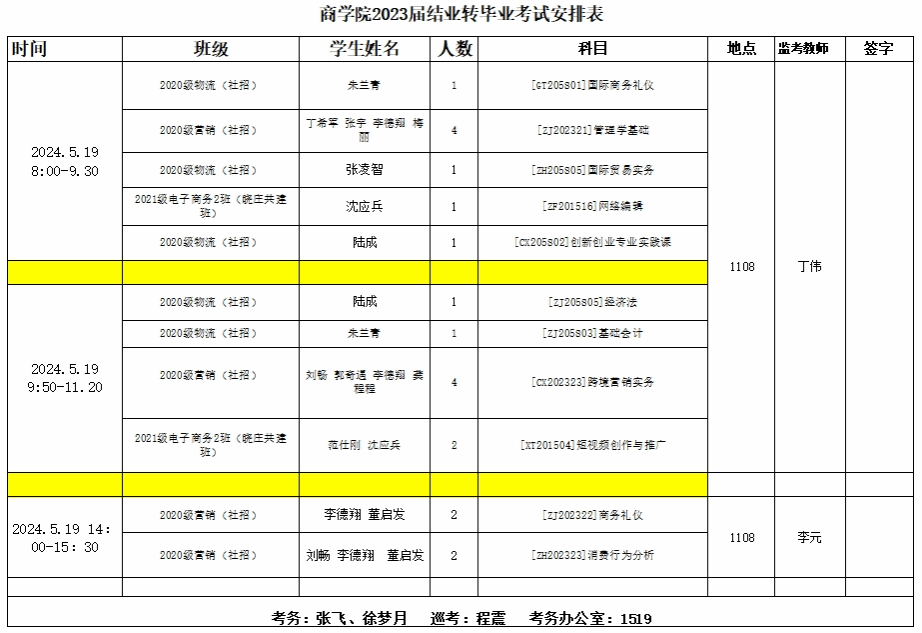 商学院2023届结业转毕业考试安排表