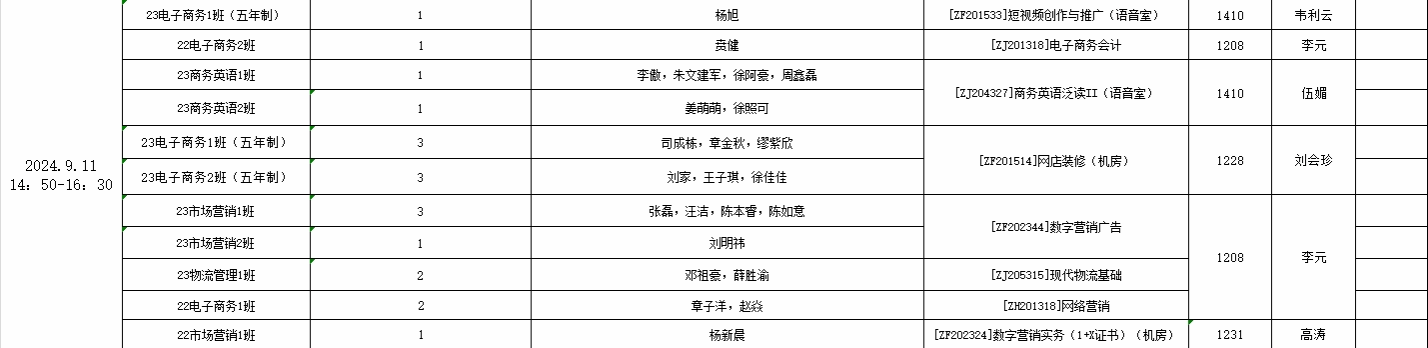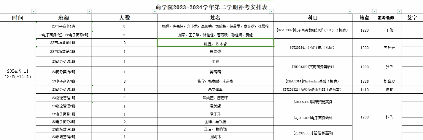 商学院2023-2024学年第二学期补考安排表