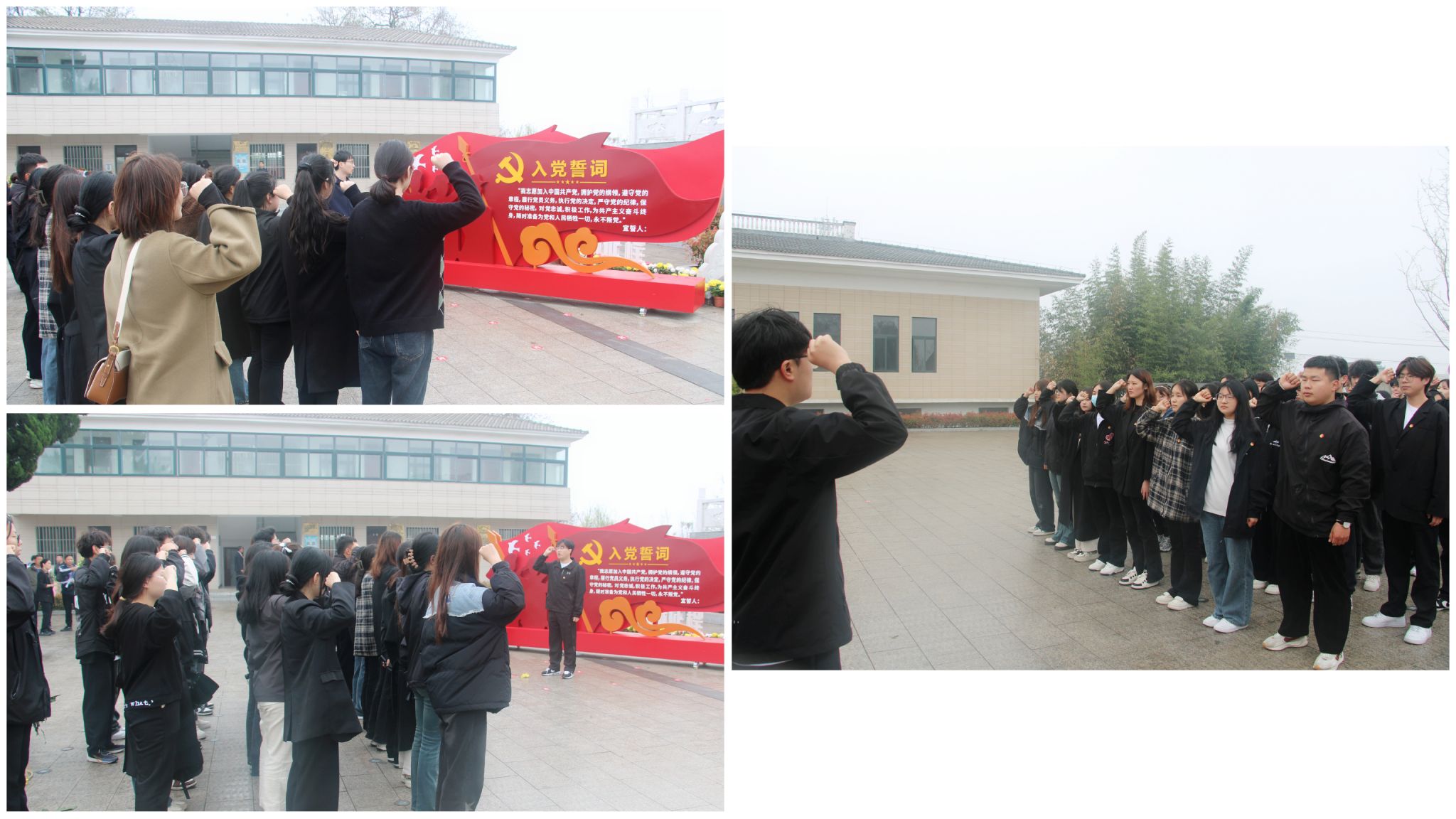 在进入周岗烈士陵园前,带队老师朱芡芡首先向大家强调了活动意义,大家在她的带领下排队有序地来到烈士墓碑前,献花默哀扫墓以示追忆。在纪念碑前,学生党支部教师党员和学生党员重温了入党誓词,入团积极分子和团学青年重温了入团誓词。