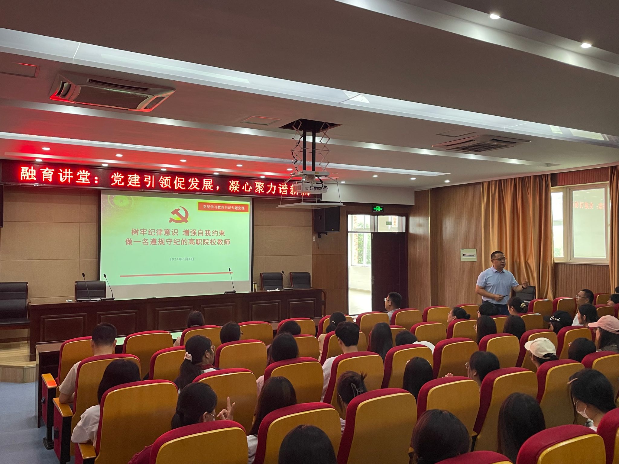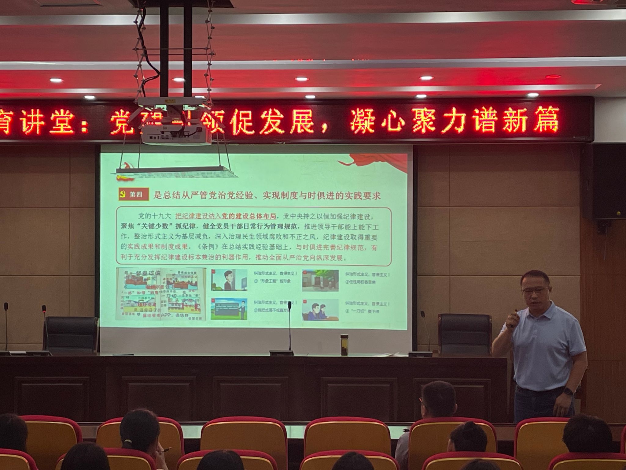 6月21日下午,校党委委员、商学院党总支书记李超在南阶205,面向全院教师党员、学生党员、入党积极分子开展了题为《如何做一名遵规守纪的高职院校教师》党纪学习教育书记专题党课,党课从深刻认识修订《中国共产党纪律处分条例》的重要意义、准确把握《条例》修订的主旨要义、全面掌握《条例》修订的主要内容、认真学习宣传贯彻执行《条例》四个方面进行。