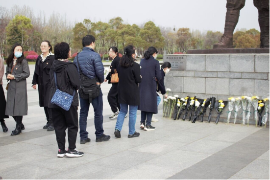 上午十点,商学院全体党员来到合肥渡江战役纪念馆雕像前举行缅怀仪式,全体党员手持并依次献上鲜花,以表达缅怀之情。
