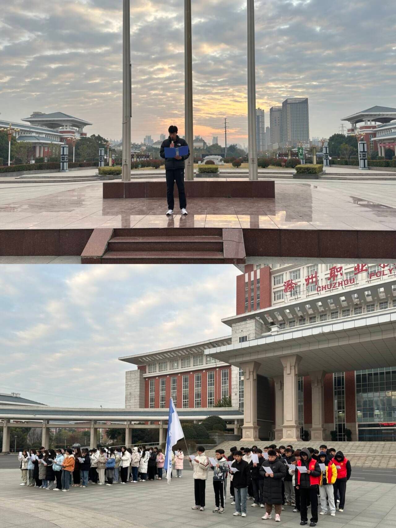 为了深入学习宪法知识,弘扬宪法精神,增强同学们的法治意识,商学院学生会于12月4日上午七点在国旗台开展了“宪法晨读”主题升旗仪式。