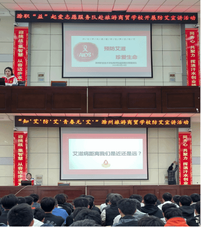 为进一步宣传和普及预防艾滋病的相关知识,提高学生群体防治艾滋病知识知晓率,增强学生们的防艾意识和自我保护能力,营造全民参与艾滋病防治工作的良好氛围。商学院“益起爱”志愿服务队于4月14日上午赴滁州市旅游商贸学校开展“知‘艾’防‘艾’,青春无‘艾’”主题宣讲活动。