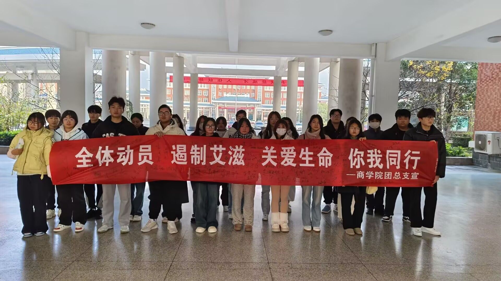 本次活动由商学院团总支主办,旨在提高全校师生对艾滋病的认识和防范意识,增强自我保护能力,倡导健康文明的生活方式。在我们的活动现场,同学们在宣传横幅上郑重签下自己的名字,代表着他们对抗击艾滋病,守护身体健康的决心。