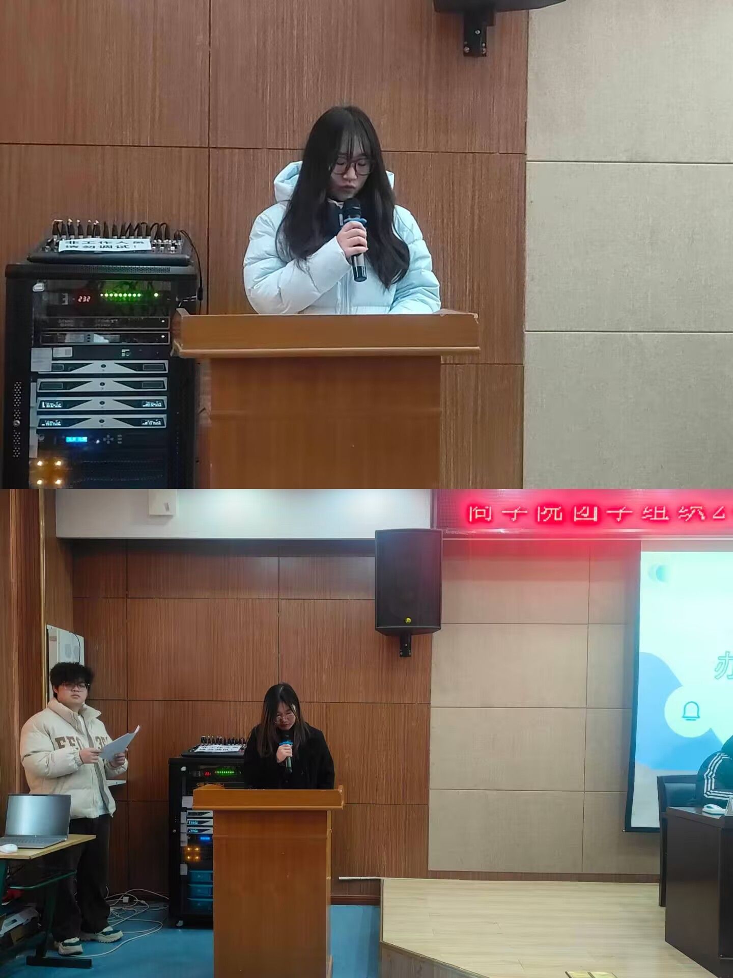 大会首先由学生会主席团成员普雅贞进行工作汇报。她回顾了过去一学期学生会的各项活动,包括志愿服务、劳动实践、文体比赛等,展现了学生会全体成员在促进校园文化建设、提升学生综合素质方面发挥的积极作用。