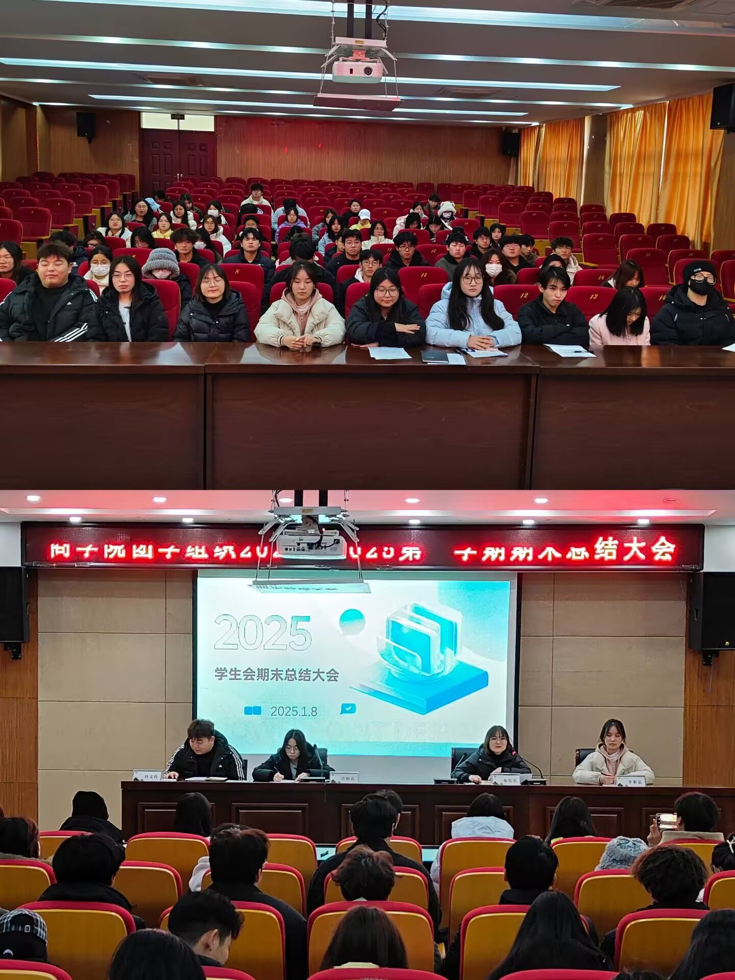 为全面总结工作成效,展望未来发展,2025年1月8日,商学院团总支、学生会2024-2025学年第一学期期末总结大会在南阶205室隆重举行。