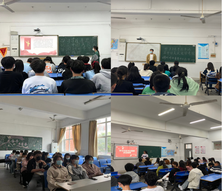 在五四青年节即将到来之际,习近平总书记4月25日上午到中国人民大学考察调研并发表重要讲话。商学院第一时间组织收听收看相关新闻报道,总书记的重要讲话精神在团支部书记中引发热议,大家纷纷记录下自己的感想与心得。随后各团支部于4月26日起陆续通过班会的形式带领支部团员开展“学习习近平总书记考察中国人民大学时的重要讲话精神”主题班会学习活动,进一步了增强同学们的思想意识、政治敏感度与团支部凝聚力。
