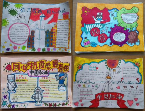 活动一:开展“齐心协力战疫情,共克时艰勇担当”手抄报、黑板报评选宣传活动。收到了近200份作品,展现了同学们在疫情防控阻击战中实现自我成长的成果与经验,呈现出同学们的爱国热情和强烈的社会责任感,凸显了青年学生坚守初心,勇担使命的意志品质以及坚定理想信念,争做时代开拓者的鸿鹄之志。