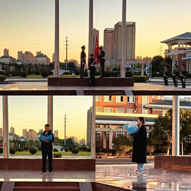 升旗仪式由21级商务英语2班梁佳慧同学主持,共两项议程。第一项议程是升国旗奏国歌。随着国旗护卫队成员迈着有力的步伐来到了国旗台下,主持人宣布升旗仪式正式开始。全场一片肃静,国旗在晨曦中迎风飘扬徐徐上升,全体同学注目行礼。第二项议程是由21级市场营销2班的付犇鑫同学以《多一点关“艾”,让世界充满爱》为题做演讲,通过讲解艾滋病基本概念、传播途径、预防方式等知识,进一步向同学们宣传如何远离艾滋,提高自我防范意识。