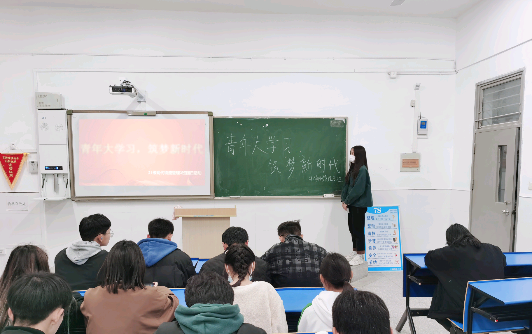 为加强共青团员们对青年大学习的深刻认知,2021年11月25日现代物流管理三班全体同学在致真楼1208教室开展以“青年大学习,筑梦新时代”为主题的团日活动。