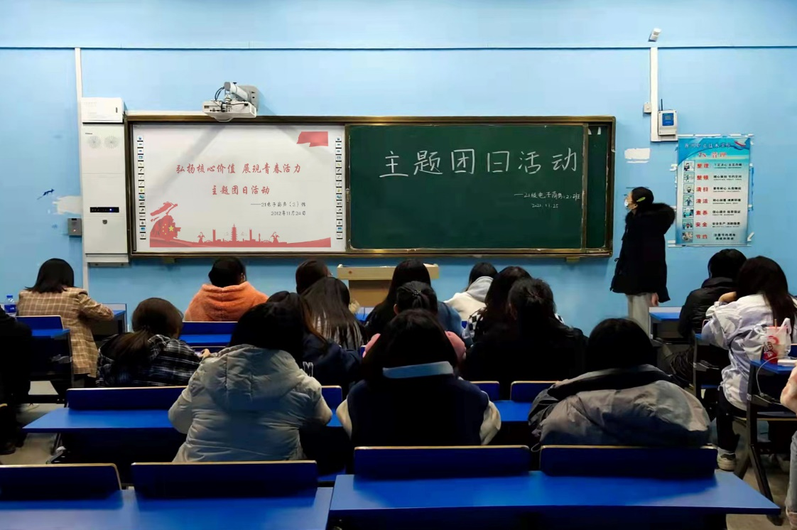为响应国家号召,彰显青春魅力,积极弘扬社会主义核心价值观,进一步培养广大青年团员的爱国主义精神,21级电商2班于25日在1217教室开展以“弘扬核心价值展现青春活力”为主题的团日活动。