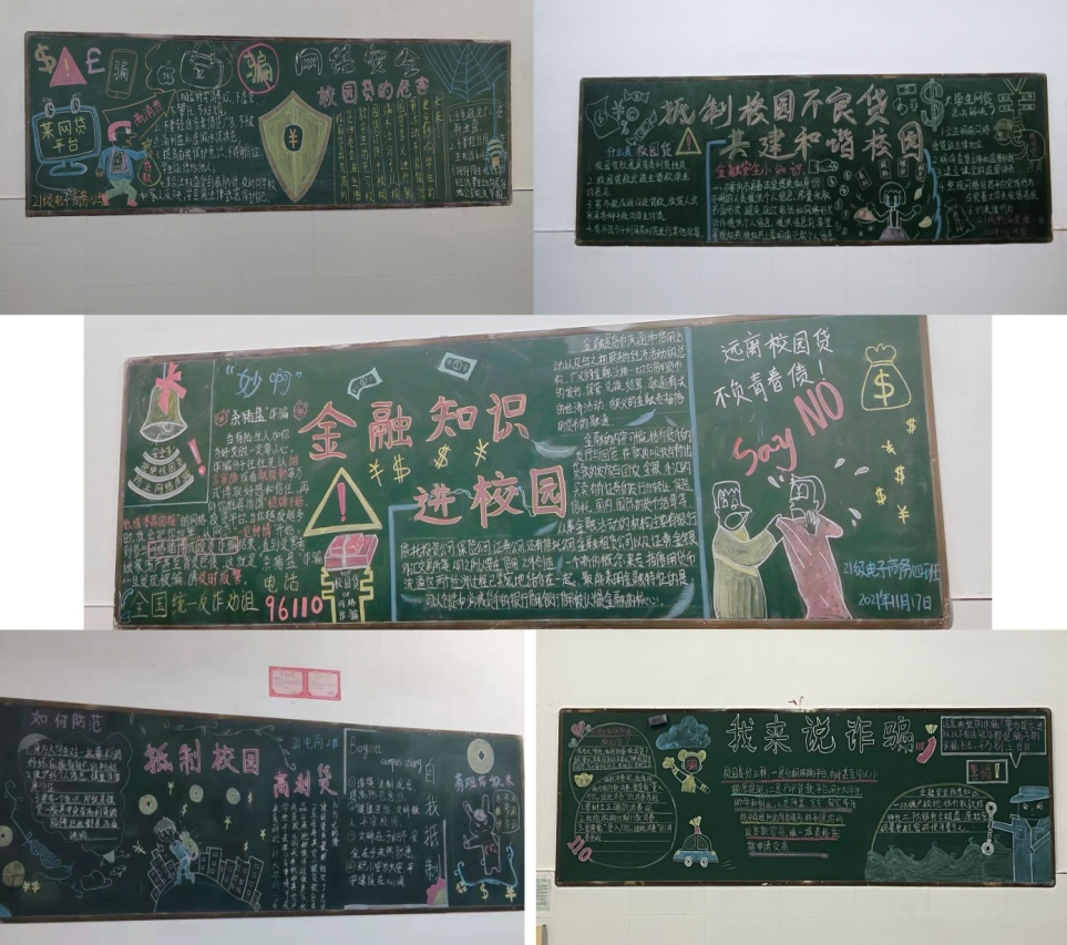 在这次主题活动中,各班通过召开主题班会,设计相关黑板报与手抄报来宣贯相关金融防范知识。