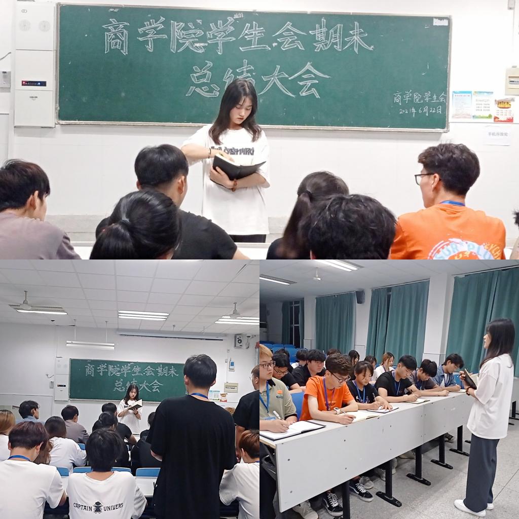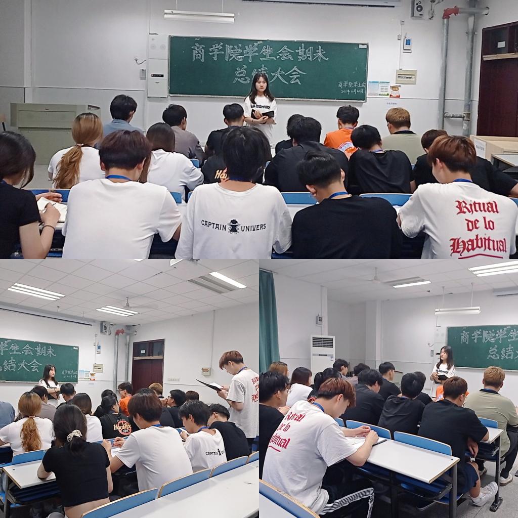 一学期的时间短暂而又漫长,为了总结经验,客观评价,梳理优点,认清不足,商学院学生会于6月22日晚在1119教室召开期末总结大会,学生会全体人员参加此次会议