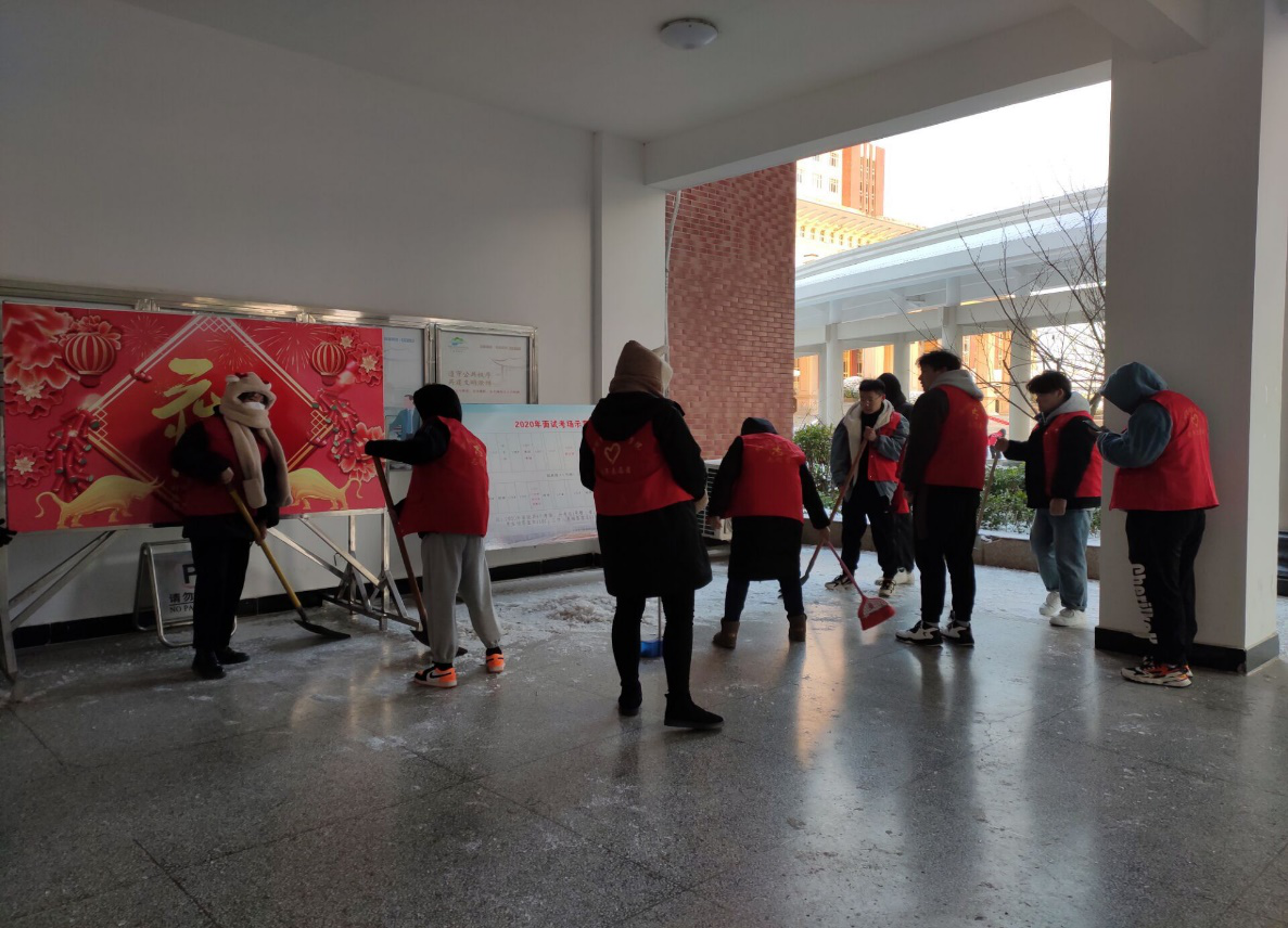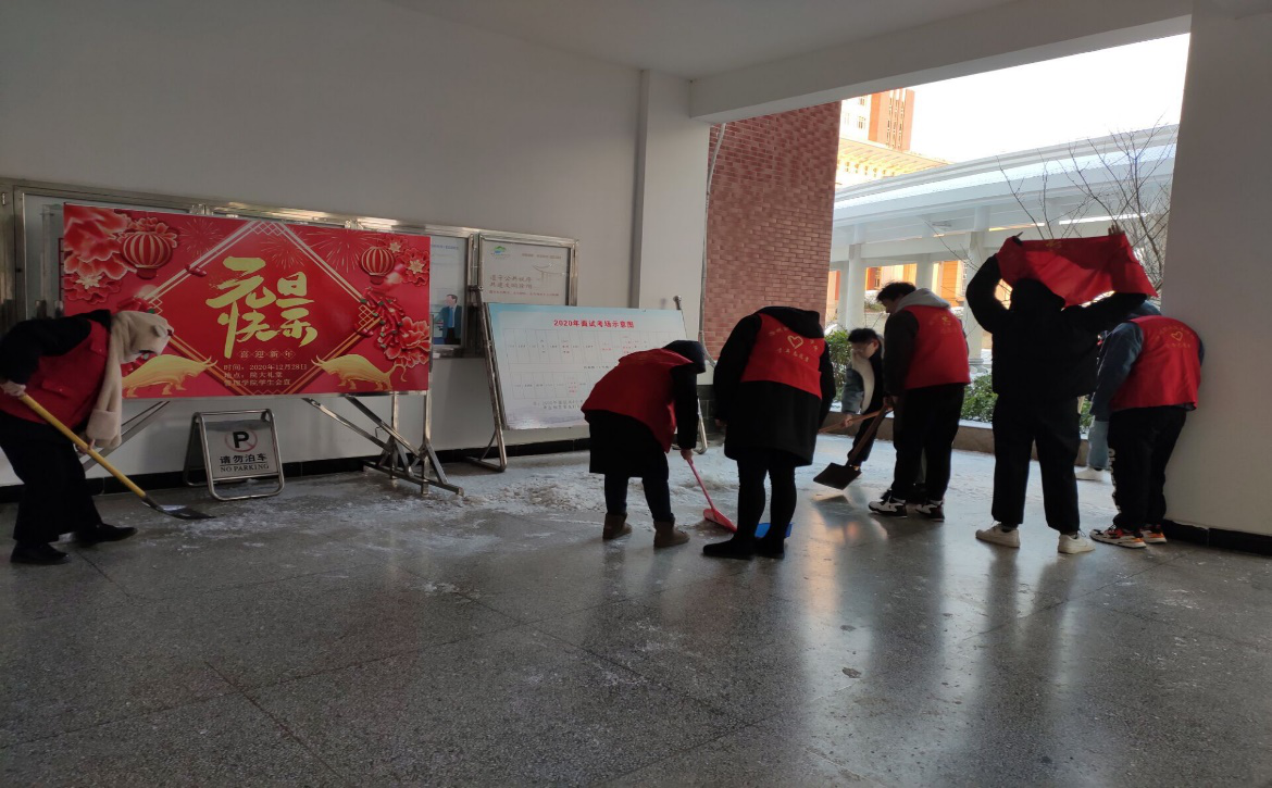 12月29日,鹅毛大雪跟随寒潮一起到来。为了扫除安全隐患,商学院组织20级电商1班的10名同学作为志愿者进行积雪清扫工作。