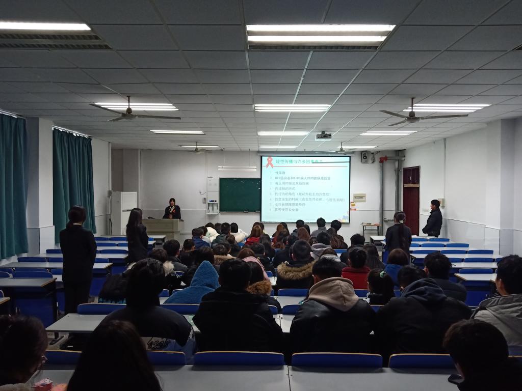 活动开始,主讲人我国艾滋病预防的重要性,从发生人群来看,青少年患艾滋病的概率呈逐步上升趋势,所以对于青少年防艾宣传教育工作是十分有必要的。同时着重讲解青少年感染艾滋病的主要原因。另外,还通过展示PPT的形式向同学们介绍了艾滋病的传播方式、及防控要点等。