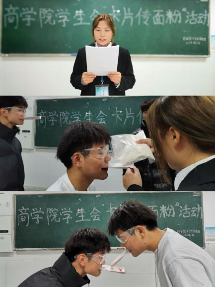 商学院学生会体育部开展“纸牌传面粉”的趣味活动