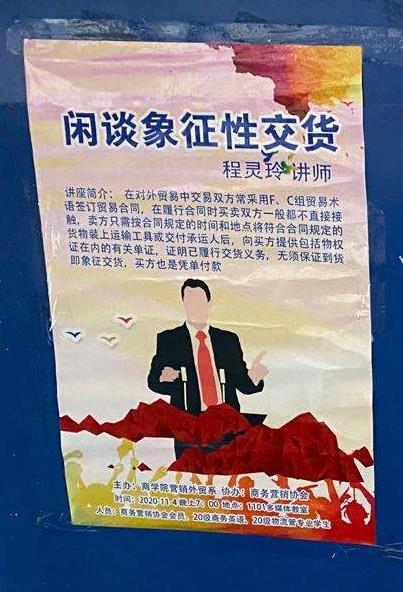 本次讲座围绕对外贸易中常采用象征性交货(即凭单据交货)展开,启发学生加强对外贸及日常生活中经常采用象征性交易的理解。整个讲座过程中,程老师除了讲解相关主题知识,同时也耐心地为同学们解答学习、生活中的疑问。