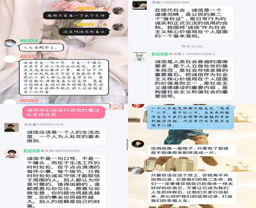 此次活动极大地增强了学生的诚信道德意识,大力弘扬了中华民族诚实守信的美德。培养学生“诚信”的优良品质,营造健康、进取的学风、校风,积极践行社会主义核心价值观,对提高学生的文明素养,营造诚信校园起到了很好的促进作用。