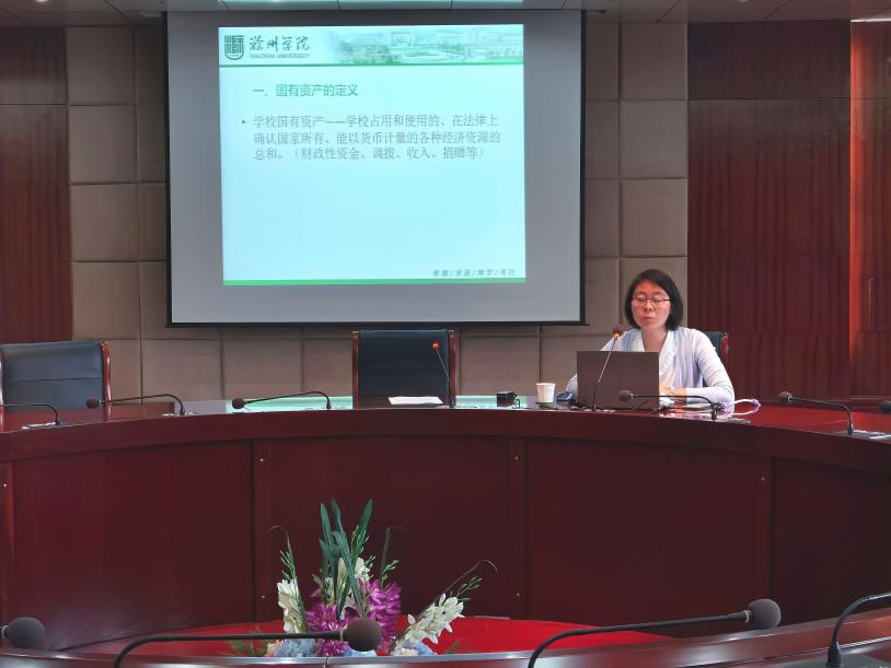 会上,滁州学院后勤管理与基建处副处长何霞就资产管理目标、相关上级文件、资产定义和表现形式、资产管理等内容做了专题报告。提出维护国有资产的安全和完整、提高使用效益、确保科学配置、高效使用的资产管理目标;资产管理要做到统一领导,归口管理,分级负责,责任到人。