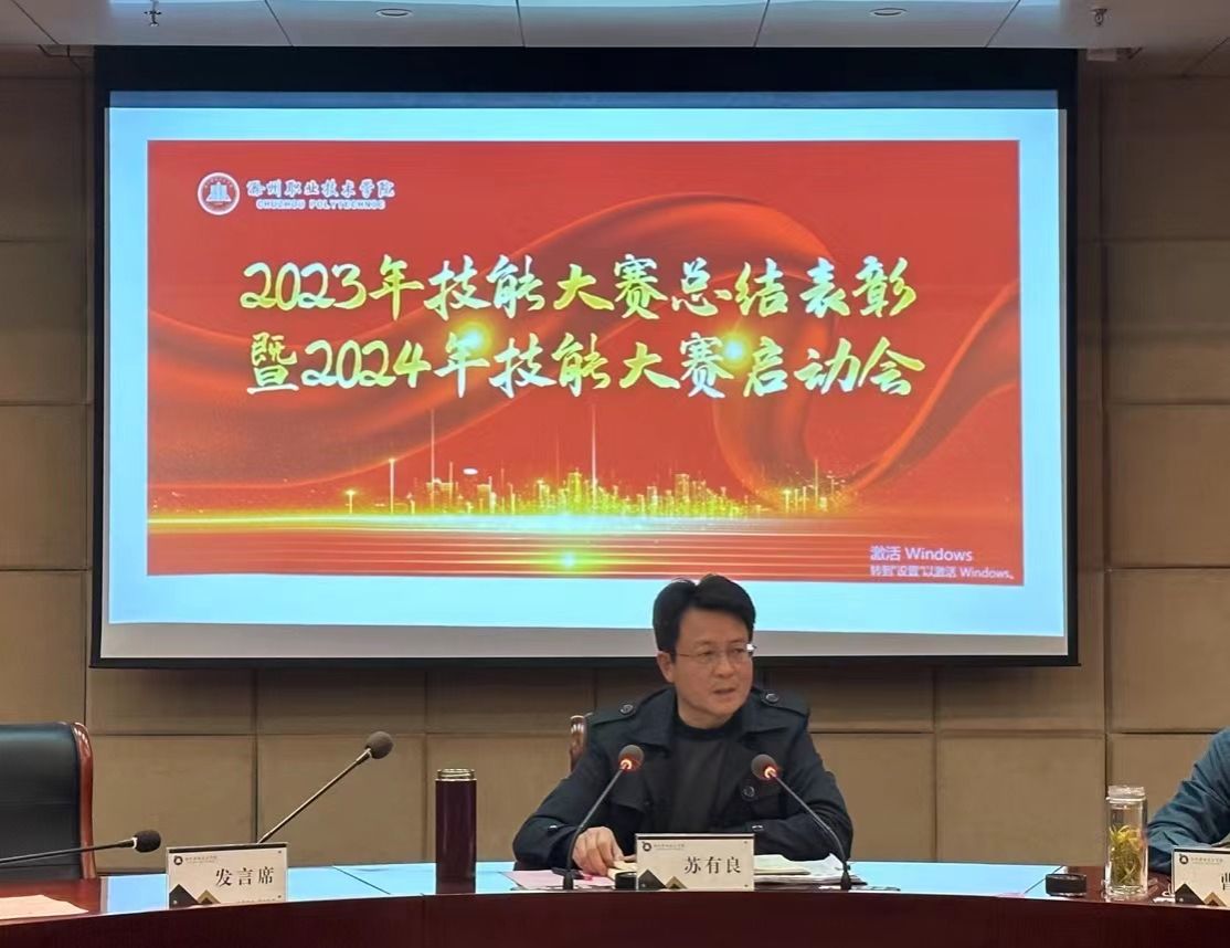 12月14日下午,Beat365召开2023年技能大赛总结表彰暨2024年技能大赛工作会议。校党委委员、副校长苏有良出席会议,实验实训中心主任曹晓斌、各教学院部院长、2023年国赛获奖师生、2023年省赛指导教师参加了会议。会议由实验实训中心副主任殷德莉主持。