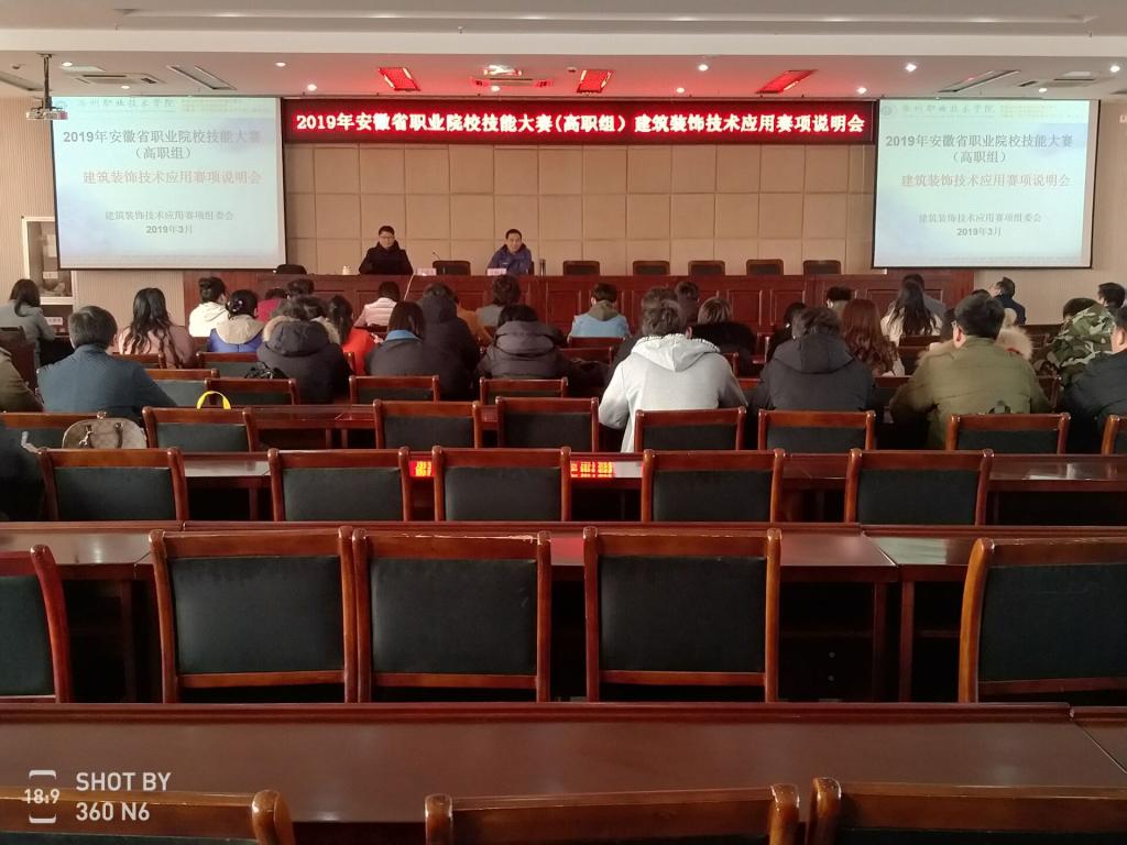 36日,2019年安徽省职业院校技能大赛建筑装饰技术应用赛项说明会在Beat365综合楼五楼报告厅召开。全省参赛院校的领队和指导老师参加了本次说明会。会议由学院实训中心副主任刘杰主持。