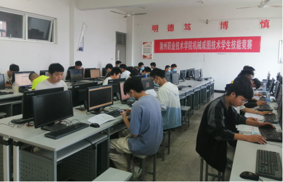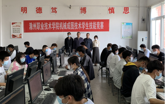 机汽学院领导亲临现场进行赛项工作检查,同学们赛场上认真答题、争先恐后,最终参赛的32名同学完成了本次竞赛答题。本赛项自开展以来,机械工程系组织专人负责,赛项团队融合了机械制图的课程教学团队,将赛项与课程教学相融合有利于促进专业发展,做到“以赛促教、以赛促学”。