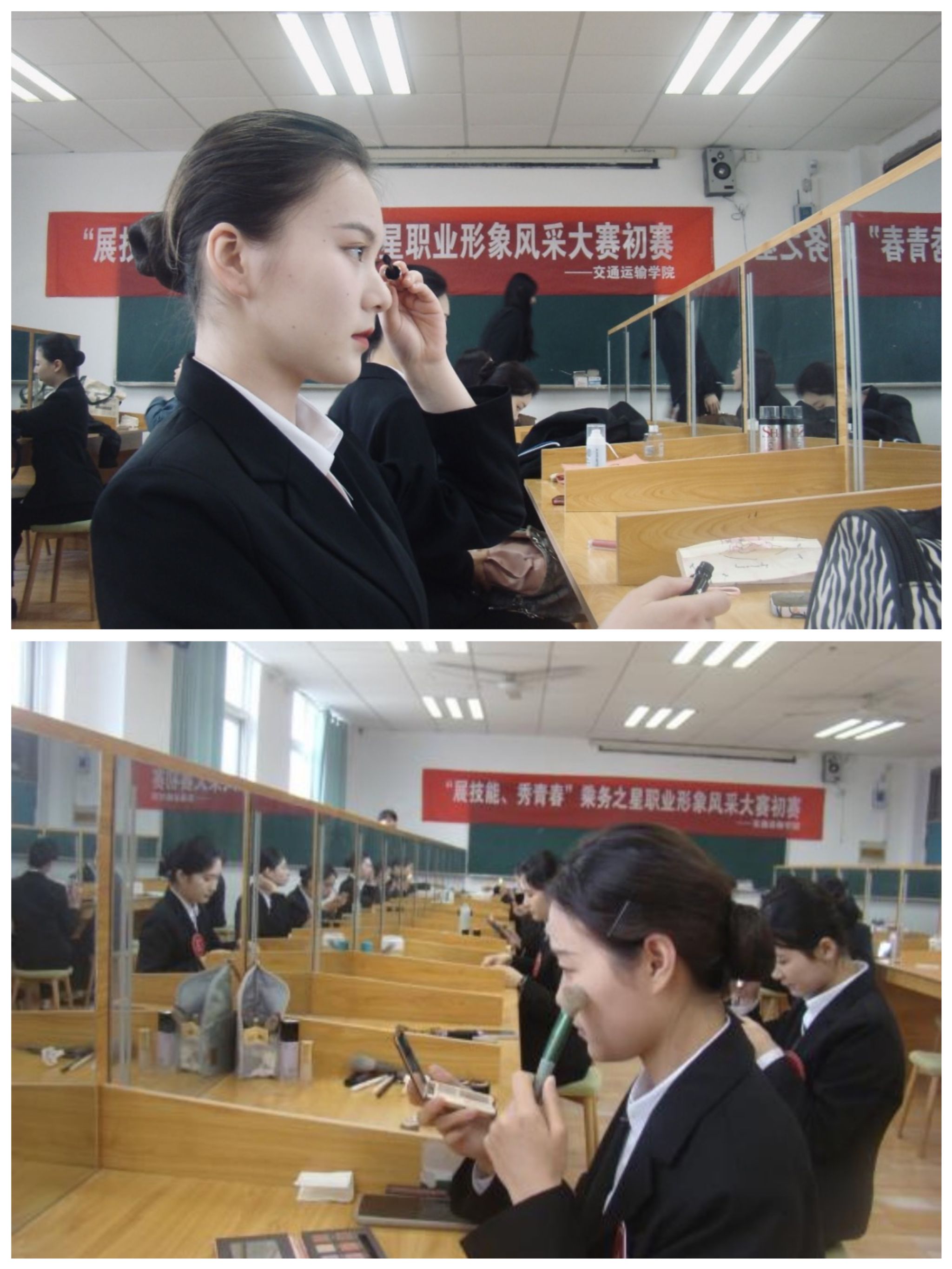 此次大赛设有6个评分项目,共有45名学生参与各项目的角逐。赛场上秩序井然、气氛紧张而热烈;选手们职业设计技能娴熟,操作有条不紊,集中体现了我院空中乘务专业学生娴熟专业技能和水平。