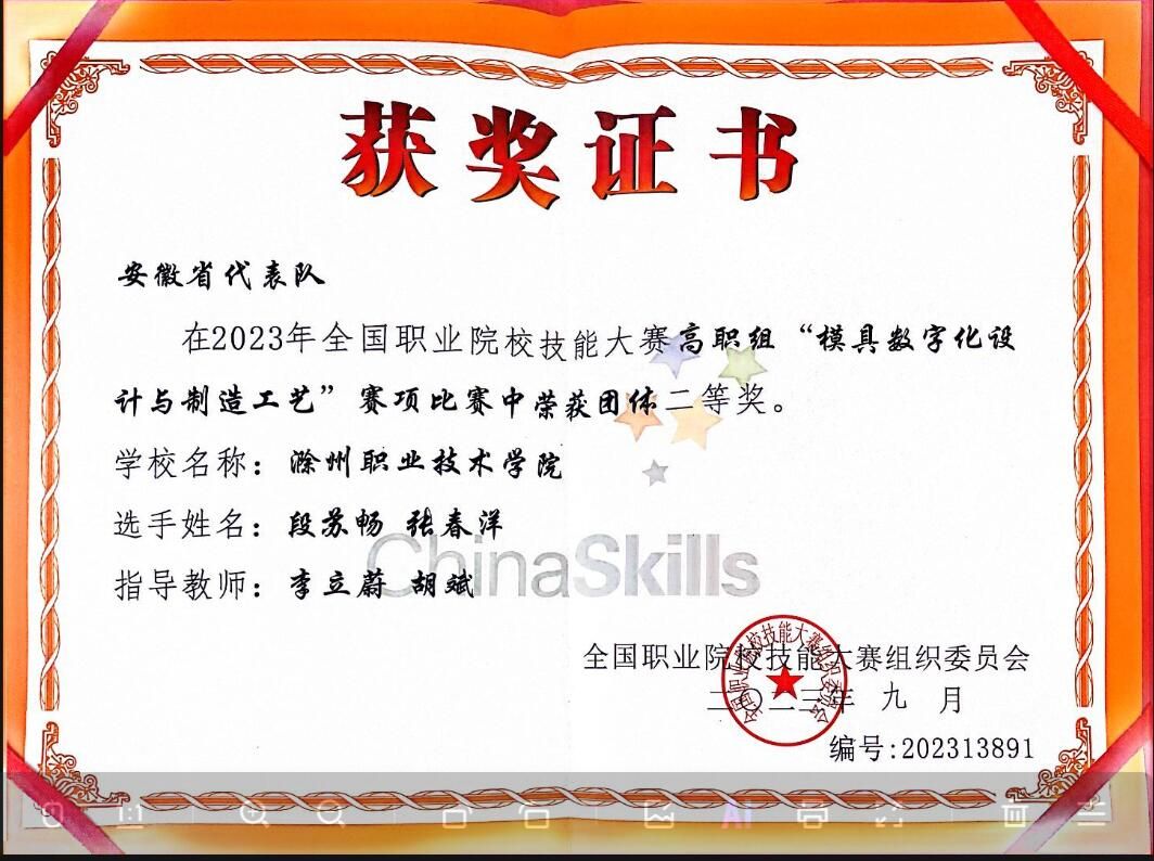 8月22日-25日,2023年全国职业院校技能大赛高职组“模具数字化设计与制造工艺”赛项在湖南工业职业技术学院拉开帷幕。来自全国各地56支参赛队伍的112名选手齐聚长沙同台竞技,Beat365学生模具专业学生张春洋、新能源汽车专业学生段苏畅组建的参赛队伍代表安徽省参赛,在教师胡斌和李立蔚指导下沉着应战,努力拼搏,以优异成绩荣获本次比赛二等奖。