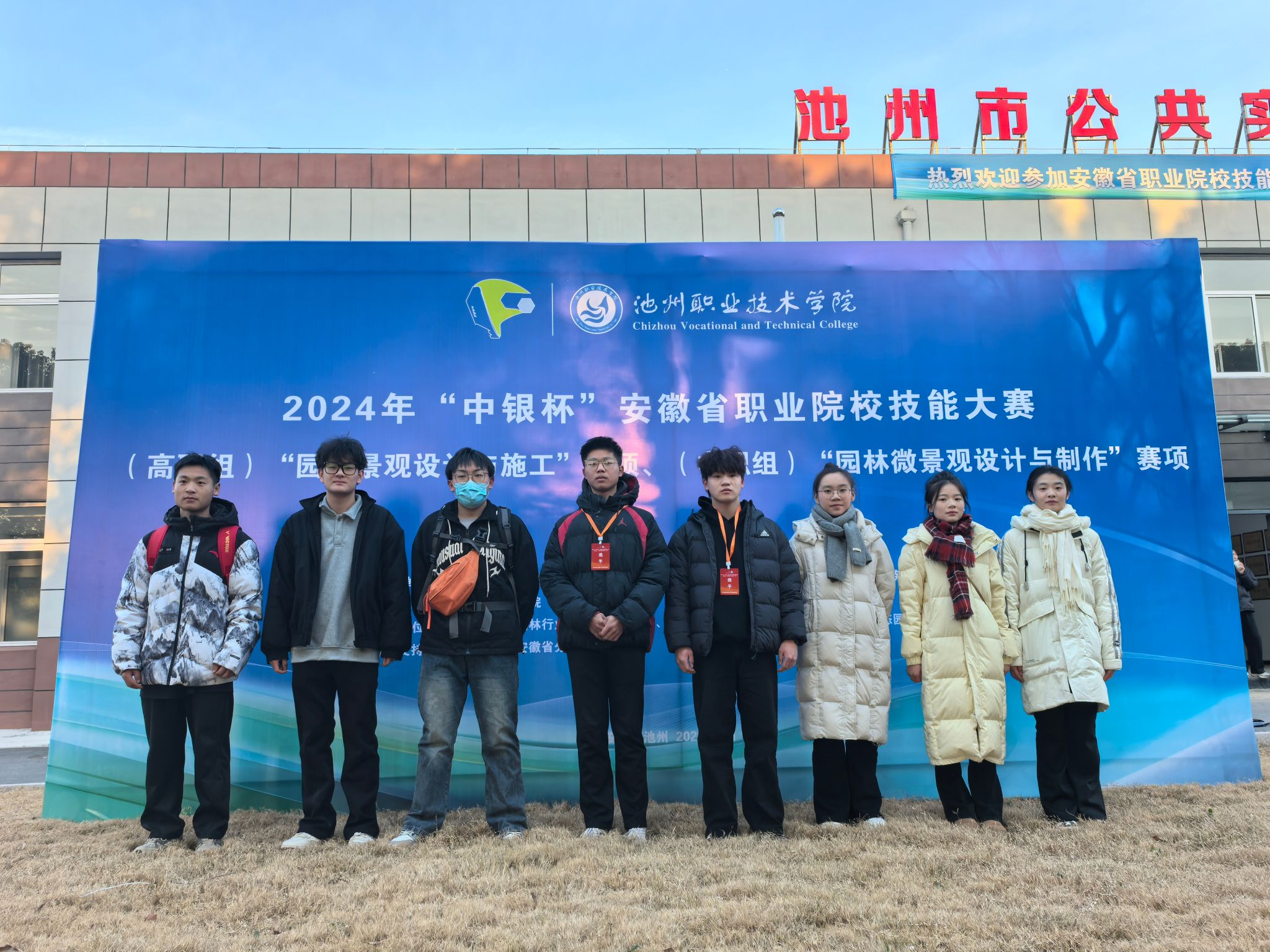 2024年“中银杯”安徽省职业院校技能大赛(高职组)“园林景观设计与施工”赛项于1月7日至8日在池州职业技术学院举行。本次比赛,共有来自全省职业院校的25支队伍同台竞技。Beat365食品与环境工程学院江生泉和薛正帅指导的陈振东、王思南、应允成、闫语翔团队以优异成绩荣获一等奖,林森和舒玲指导的孙慧龙、凤汝强、张雅婷、佟娜娜团队荣获二等奖。