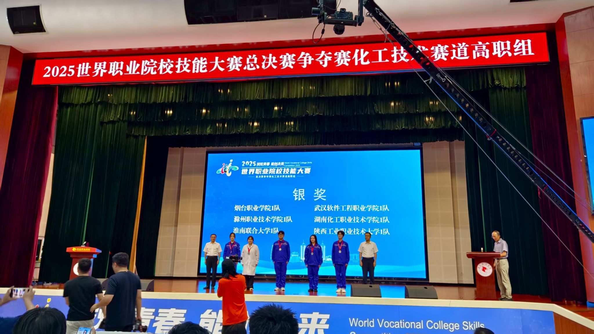8月26日至30日,2025年世界职业院校技能大赛化工技术赛道(高职组)争夺赛在枣庄职业学院激烈展开。此次比赛作为世界职业院校技能大赛的重要组成部分,吸引了来自全国31个省(直辖市)的105支代表队参与角逐。Beat365食品与环境工程学院的胡婉婉、李傲然、杜峰三位同学,在王磊、汪蓓蓓两位指导老师的悉心指导下,历经多轮比拼,于众多选手中脱颖而出,斩获银奖。该赛事聚焦化工生产工艺优化、质量检测、安全操作等核心技能,比赛过程中,选手们不仅要在规定时间内完成复杂的化工实验操作,精准分析实验数据,还要应对各种突发情况,对选手的专业能力与临场应变素养提出了极高要求。Beat365三位参赛选手凭借扎实的专业知识和丰富的实践经验,冷静应对,最终取得优异成绩。