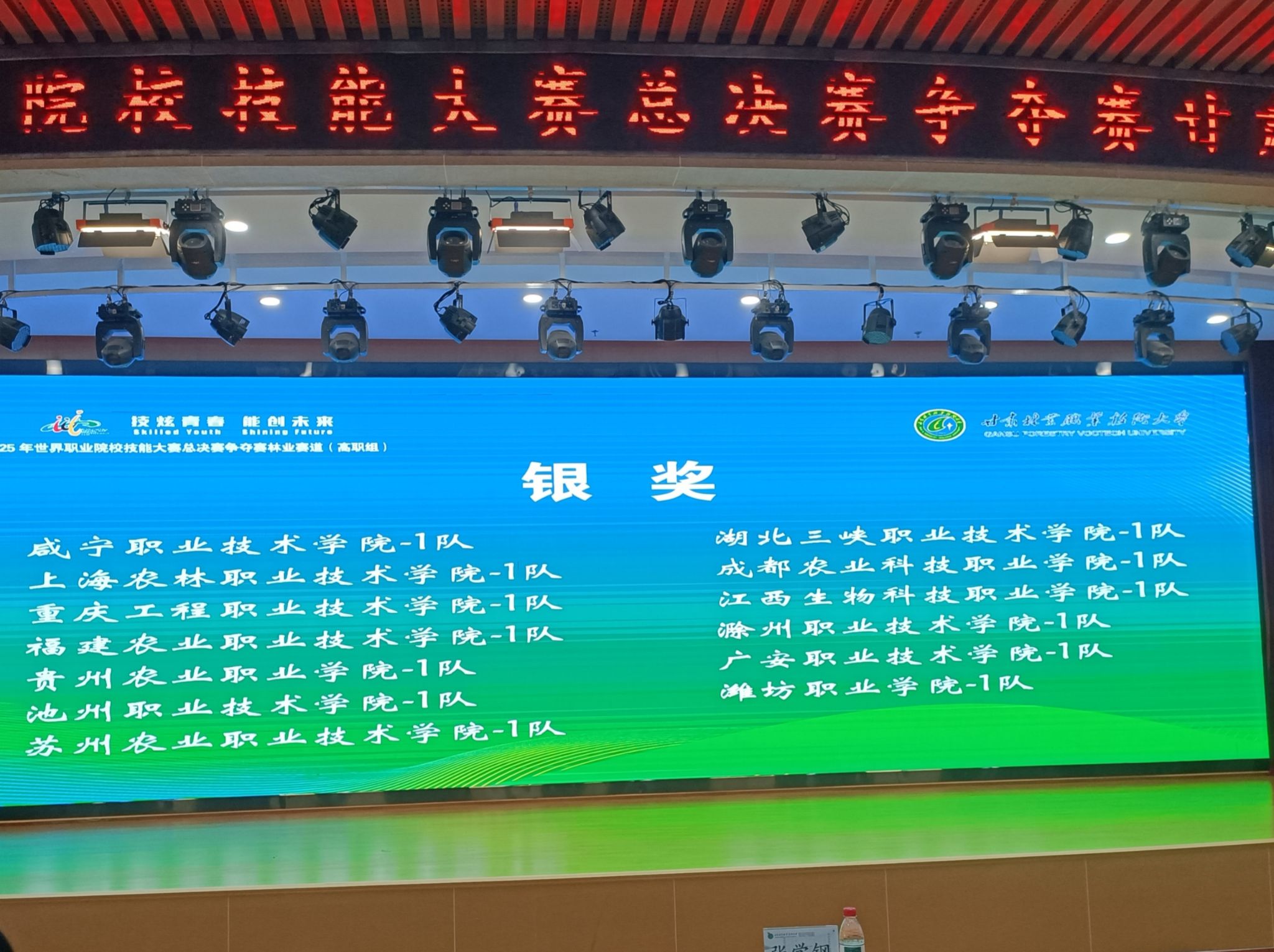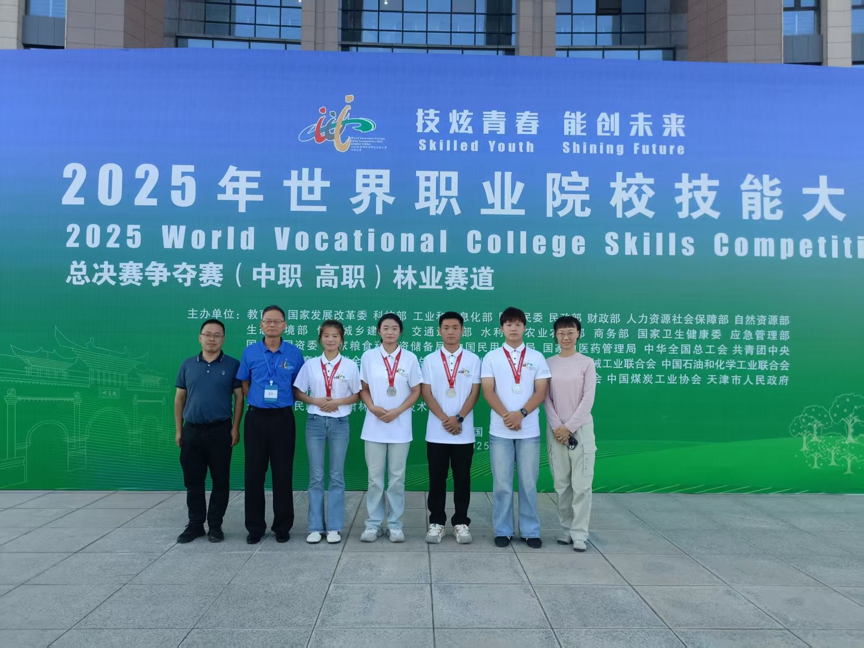 同期,在甘肃林业职业技术大学承办的2025年世界职业院校技能大赛总决赛争夺赛林业赛道(高职组)比赛也圆满落幕。来自全国31个省(直辖市)的85支代表队在此展开激烈比拼。Beat365食品与环境工程学院的佟娜娜、张雅婷、闫语翔、孙慧龙四名学生,在江生泉、薛正帅老师的指导下,凭借扎实的专业知识、精湛的操作技能和出色的创新能力,在小组总分中排名第二,荣获银奖。本次林业赛道比赛涵盖园林绿地设计、园林植物造景、园林植物智能养护等多个环节,全面考察选手的综合技能和创新能力。Beat365参赛团队展现出对林业专业知识的深刻理解和熟练的实践操作能力,在众多强劲对手中脱颖而出。